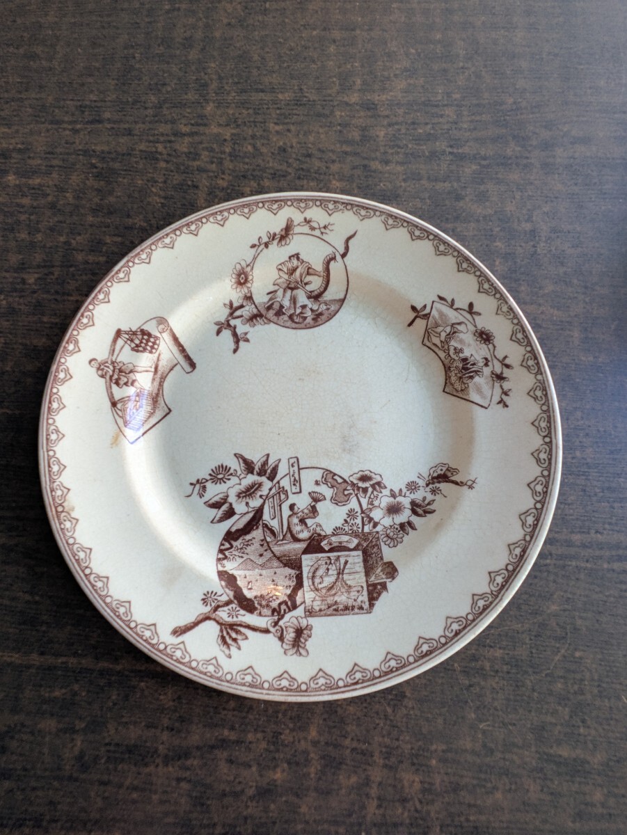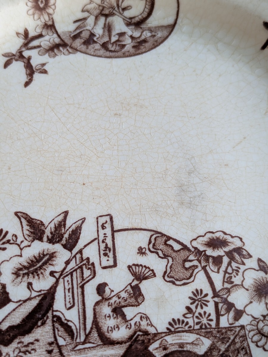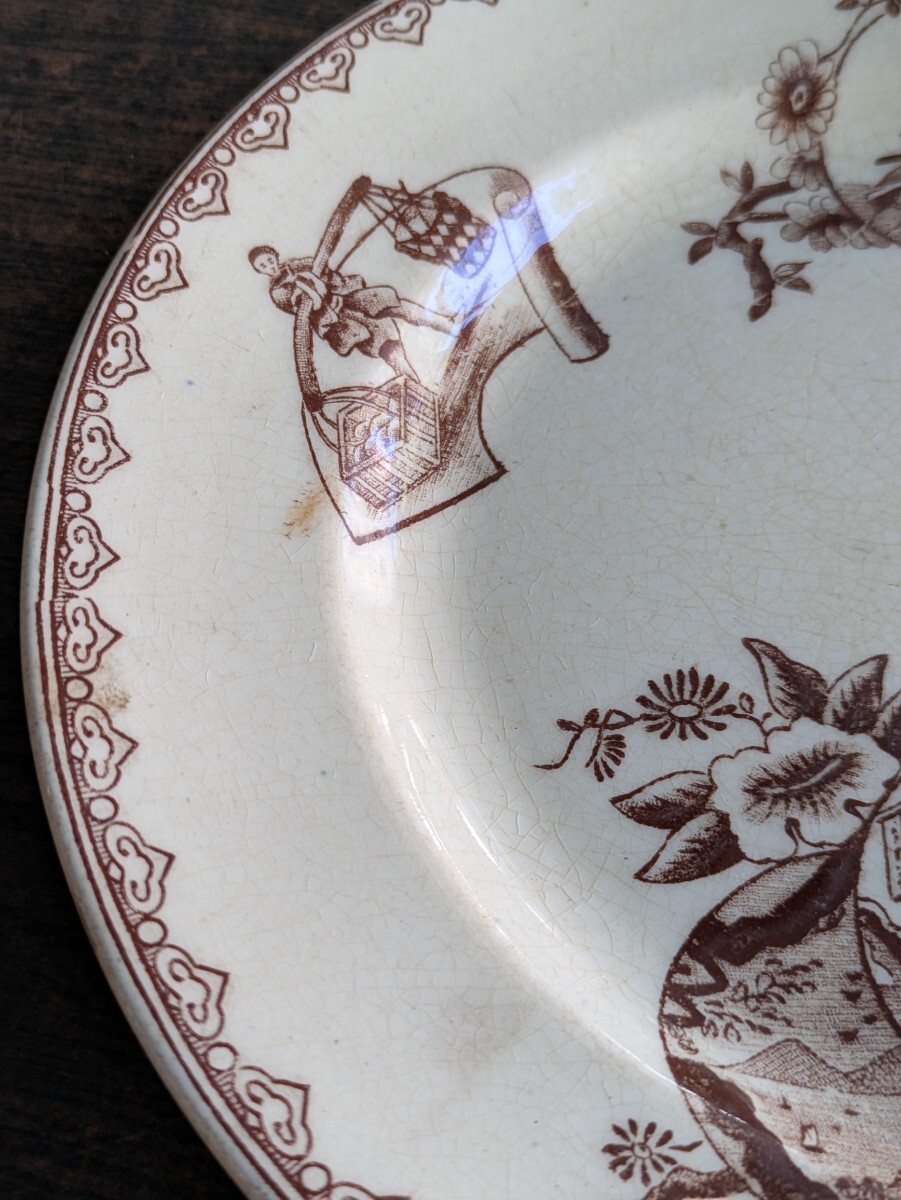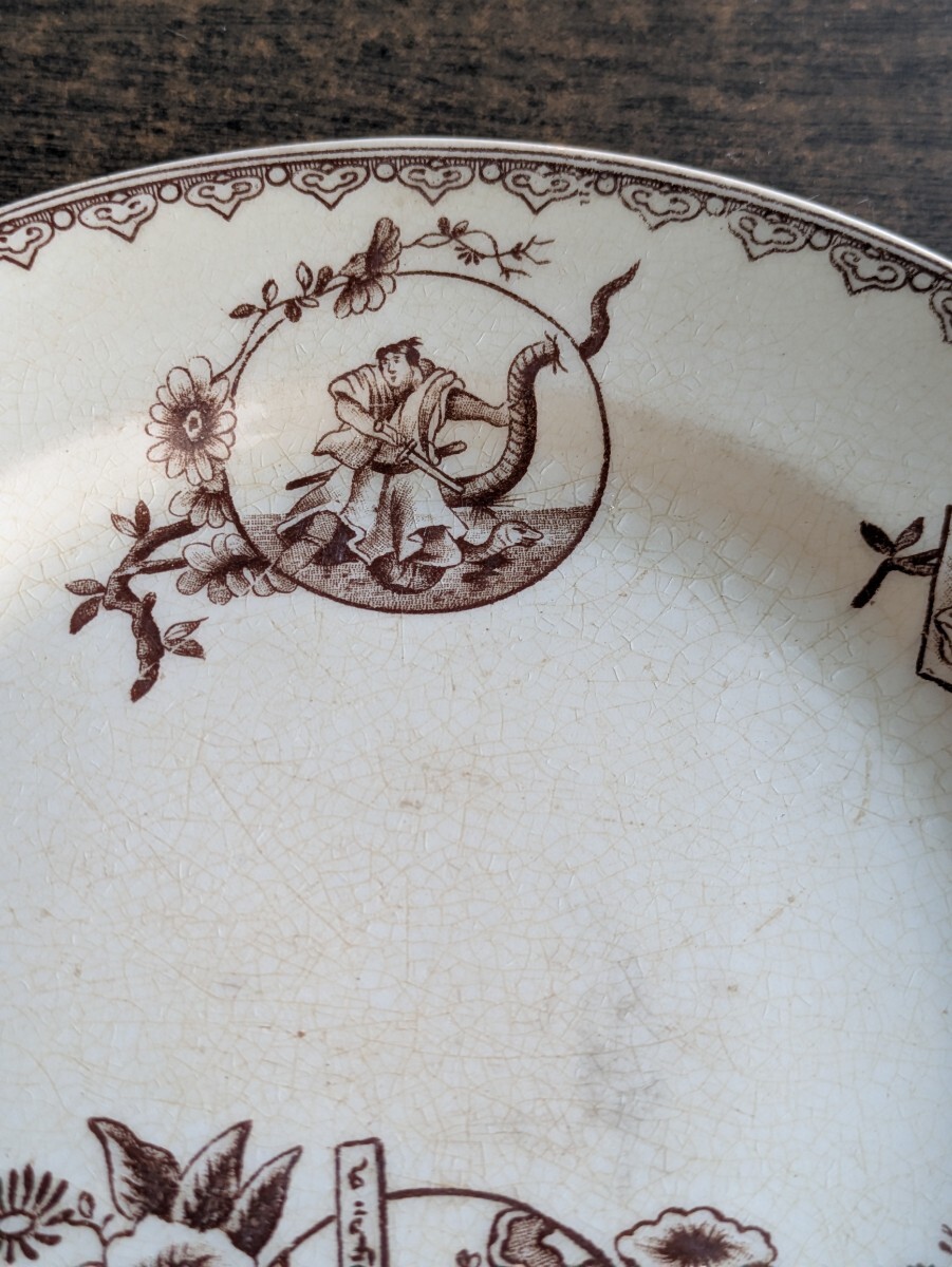 ブロカント購入 アンティーク R&Sクレールフォンテーヌ Kioto (茶色)プレート 23cm ジャポニズム 海外発送(送料3200円)