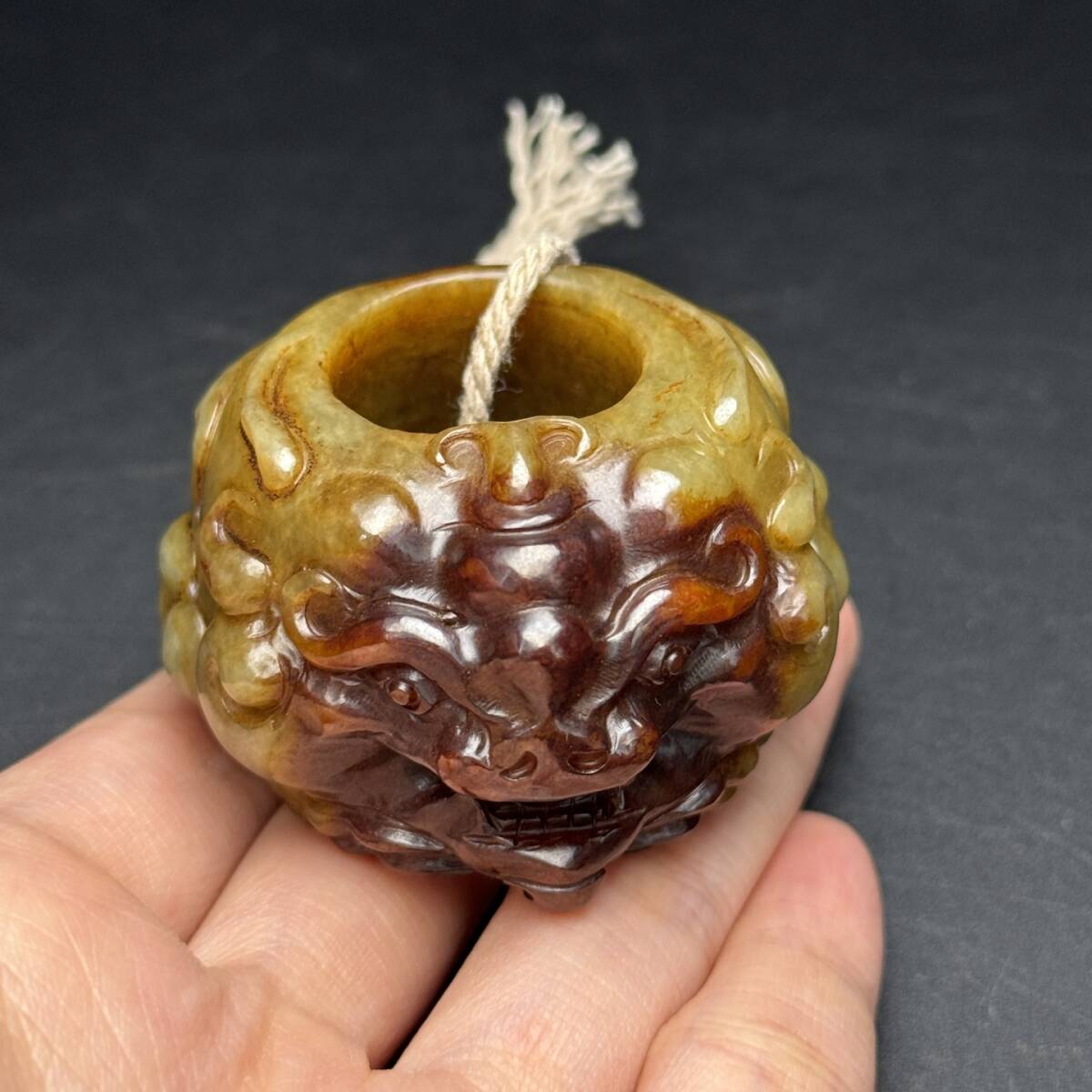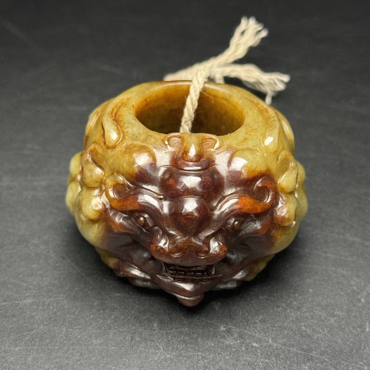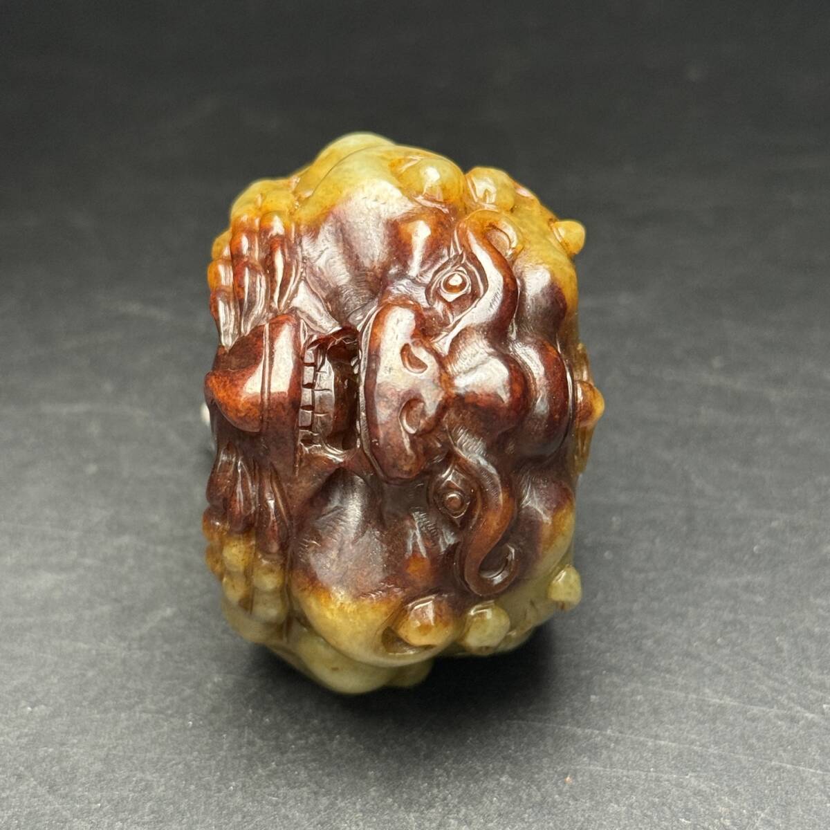 唐物 清 玉彫 和田玉 獸面大指を折る 招財納福 福壽如意 玉質温潤 包漿一流 極細工 中国古玩 骨董品 古美味 D68
