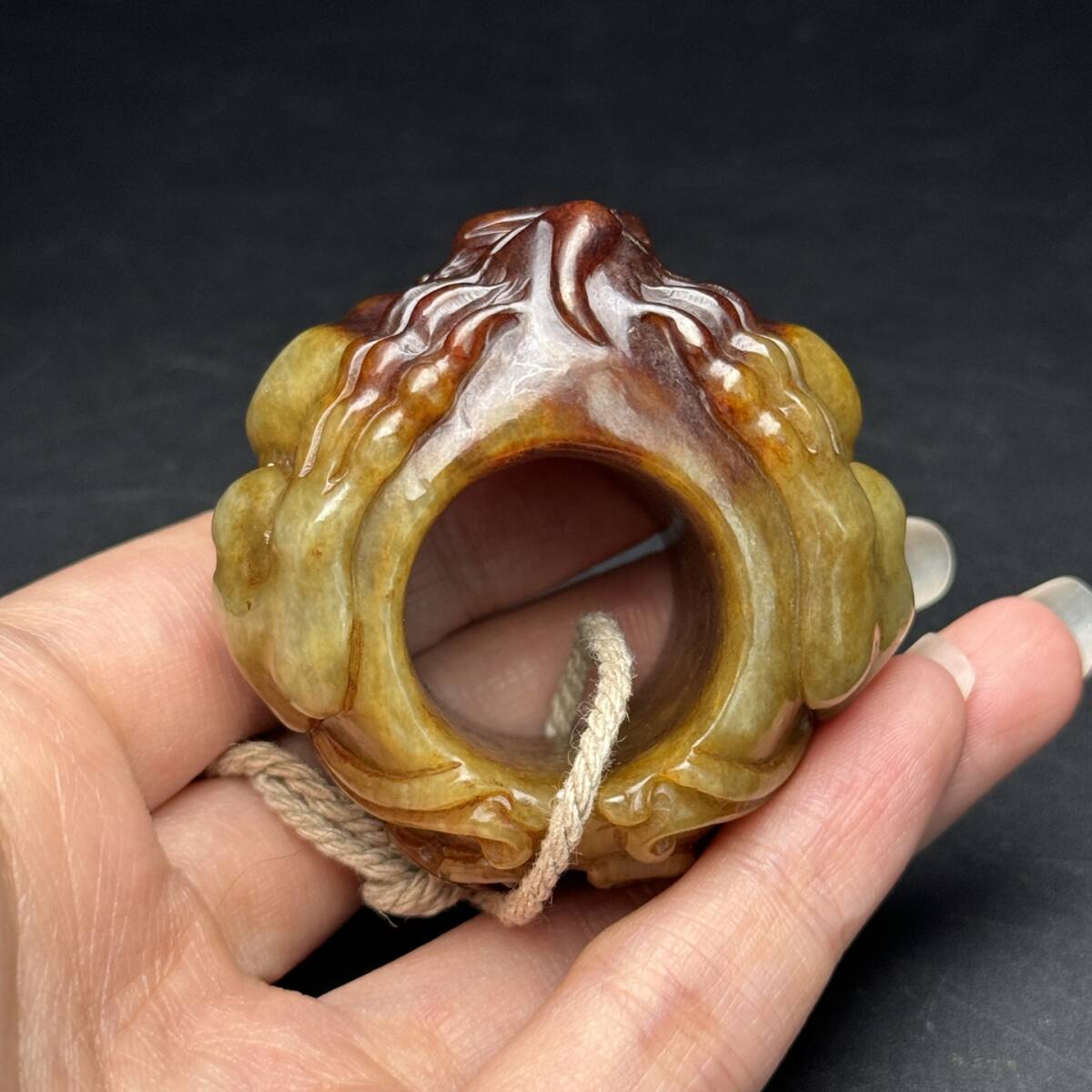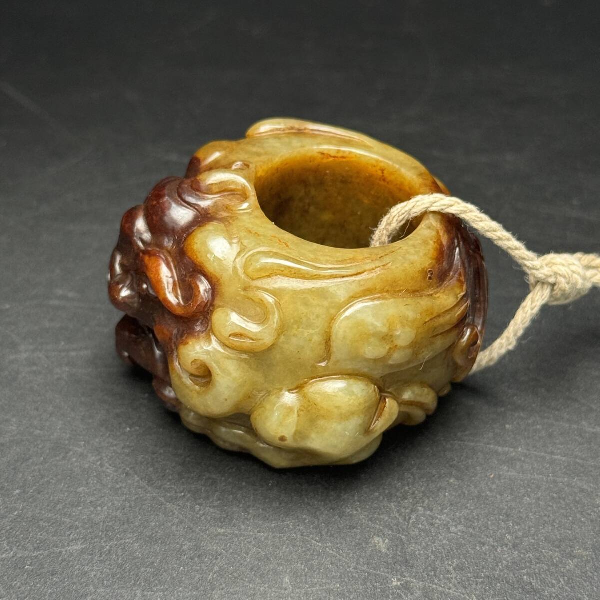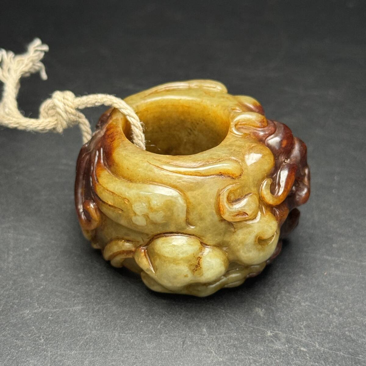 唐物 清 玉彫 和田玉 獸面大指を折る 招財納福 福壽如意 玉質温潤 包漿一流 極細工 中国古玩 骨董品 古美味 D68