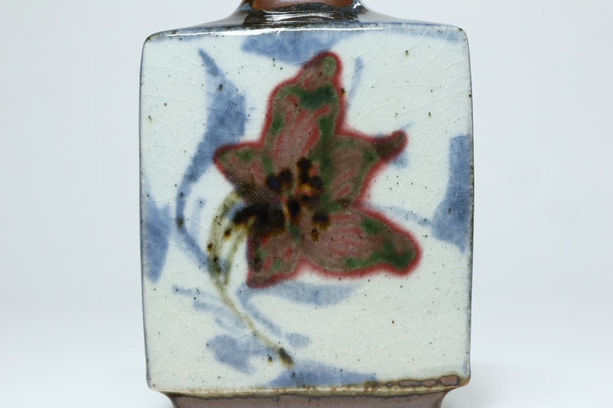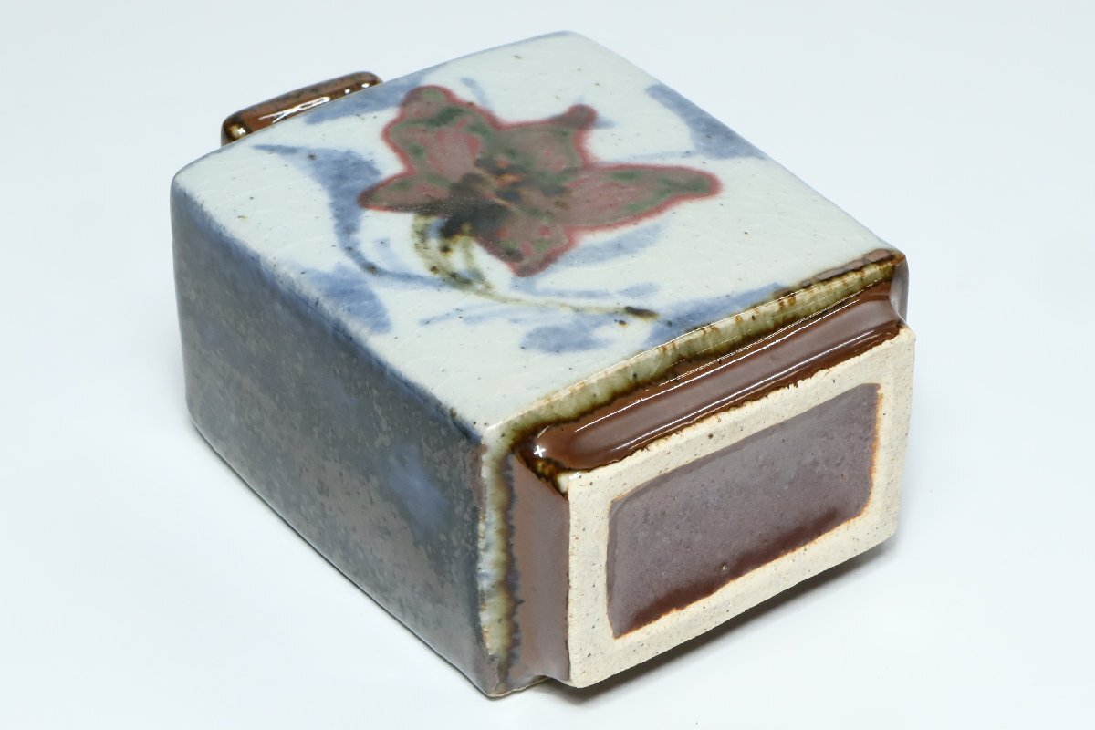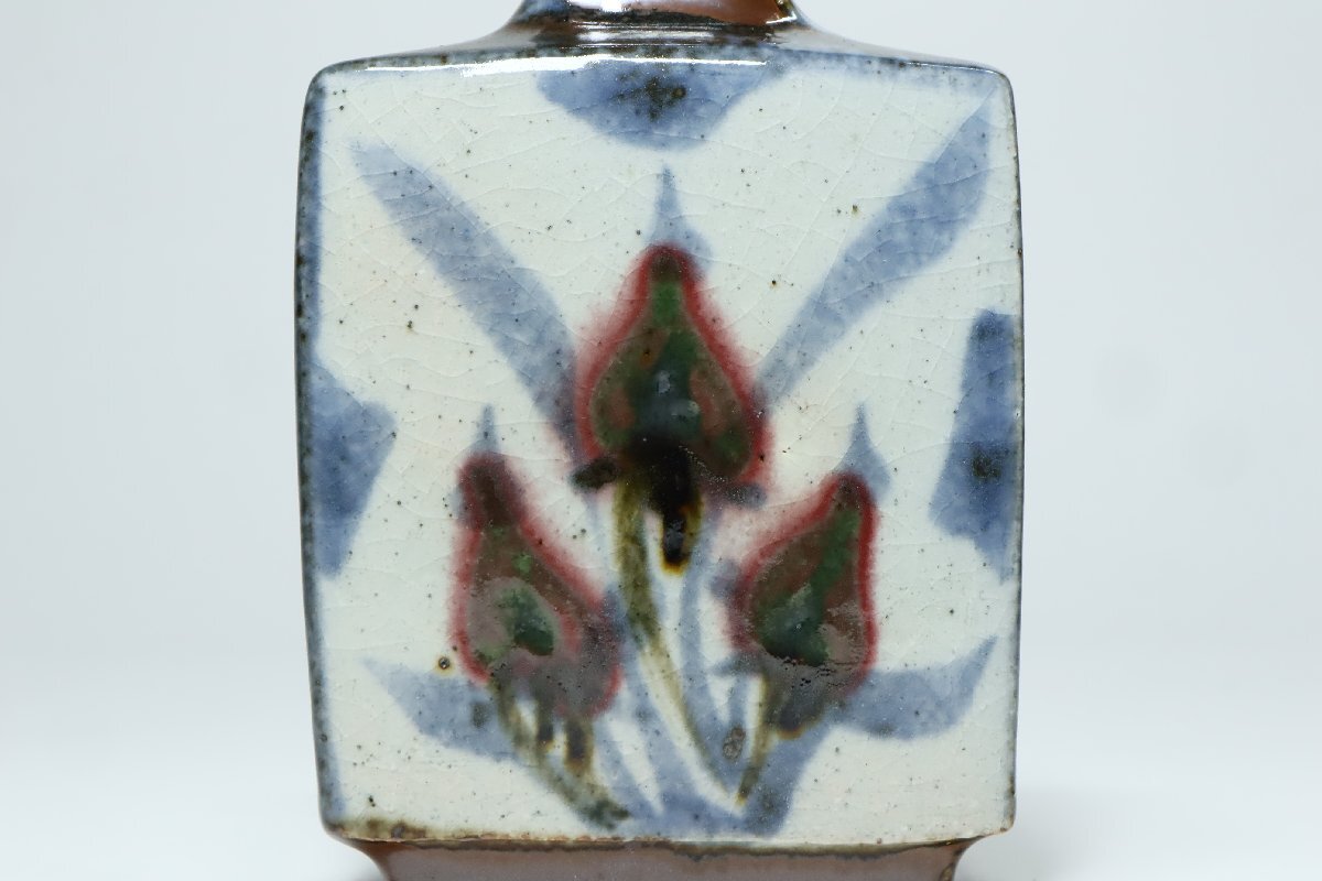 ・益子焼 河井武一 花紋扁壷 共箱 /花瓶 一輪挿し 花器 民芸 |
