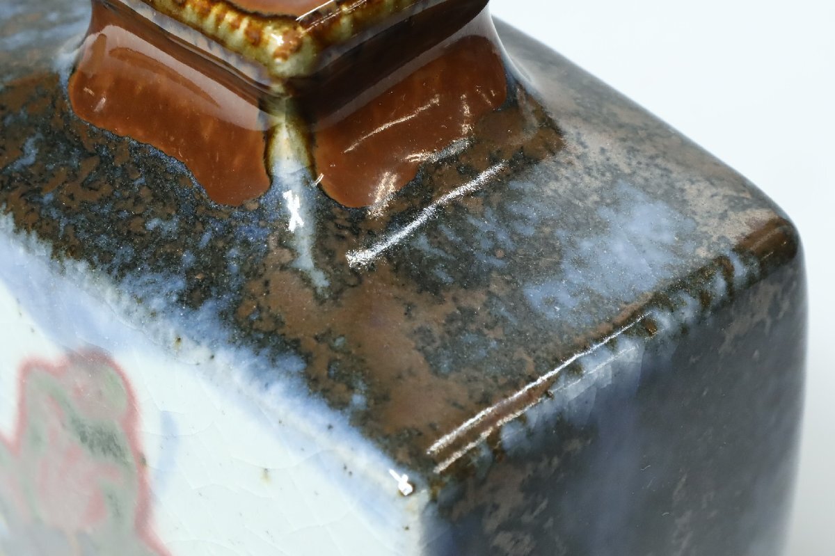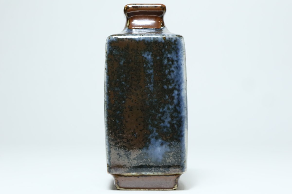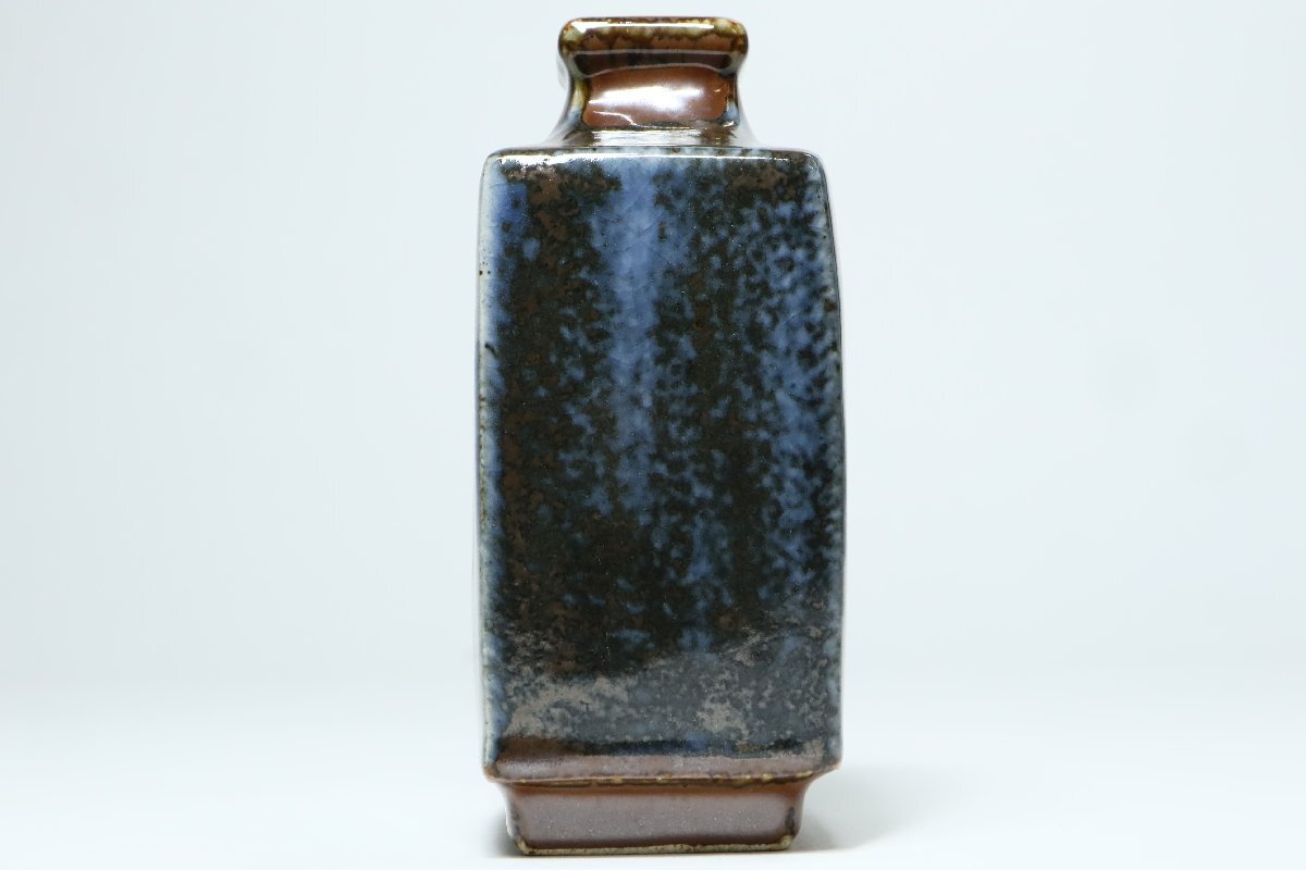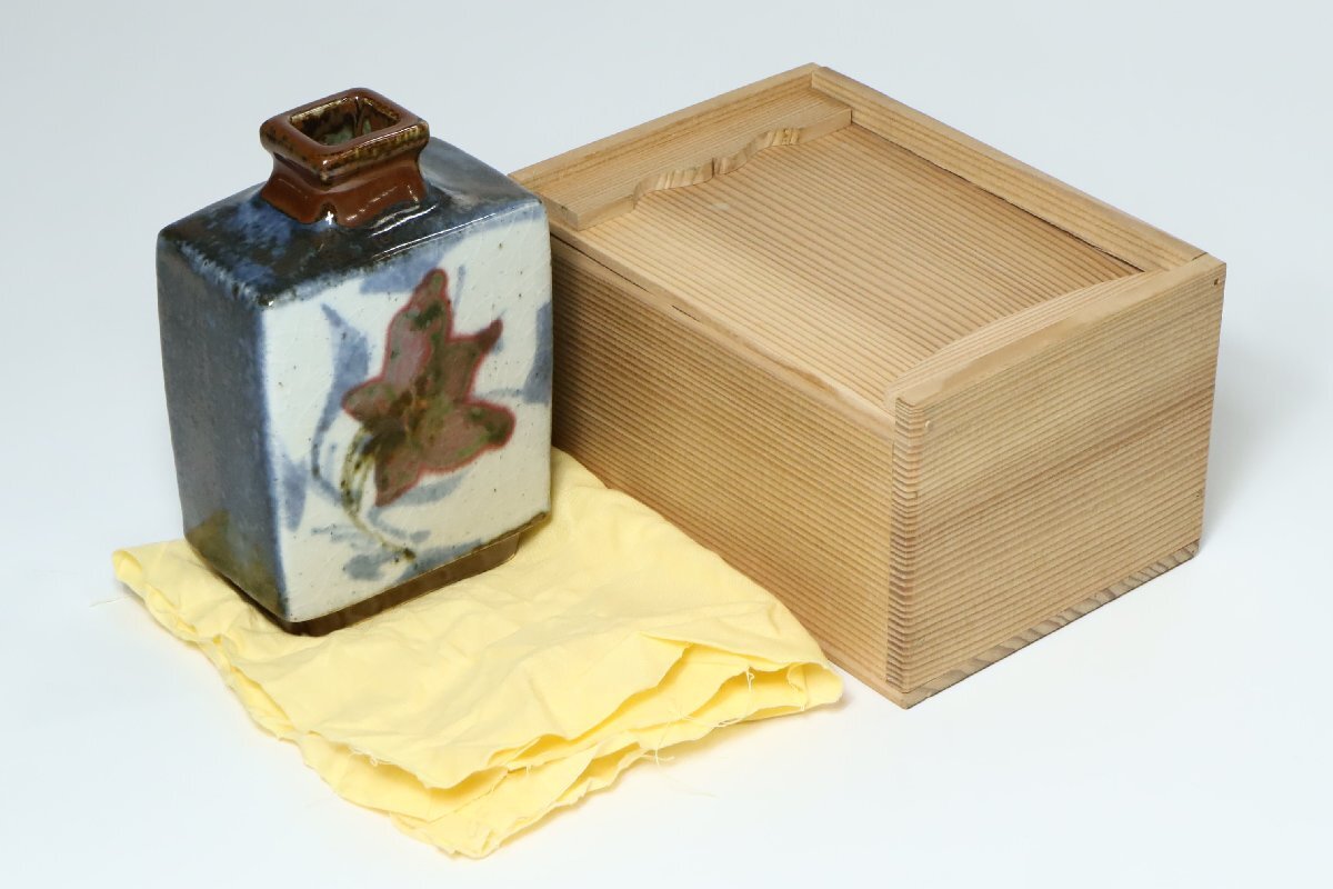 ・益子焼 河井武一 花紋扁壷 共箱 /花瓶 一輪挿し 花器 民芸 |