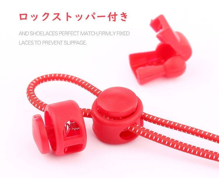 靴紐と部品をセットすることで、ロックストッパーを押すことで、靴ひもを緩めたり、締めたりできるので、