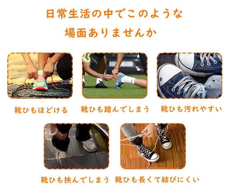 ※長時間のご使用、激しい運動でのご使用の場合、ストッパーが緩む場合がございます。※出品物は靴ひも4足分(黒2白2)セットとなります、靴などは付属しておりません。