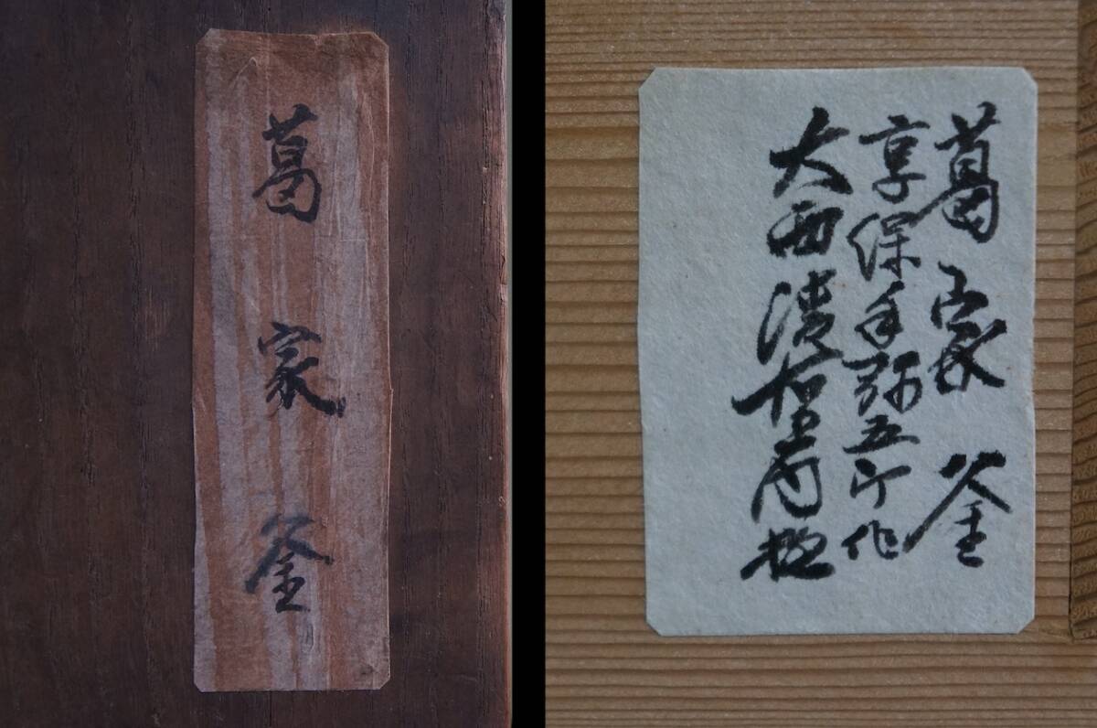■ 和銑 葛屋釜「享保時代 江戸名越家4代名越弥五郎(昌美)・京都大西家 15代大西清右衛門(浄心)極め」(極箱)<釜鐶付>★茶釜 茶道具
