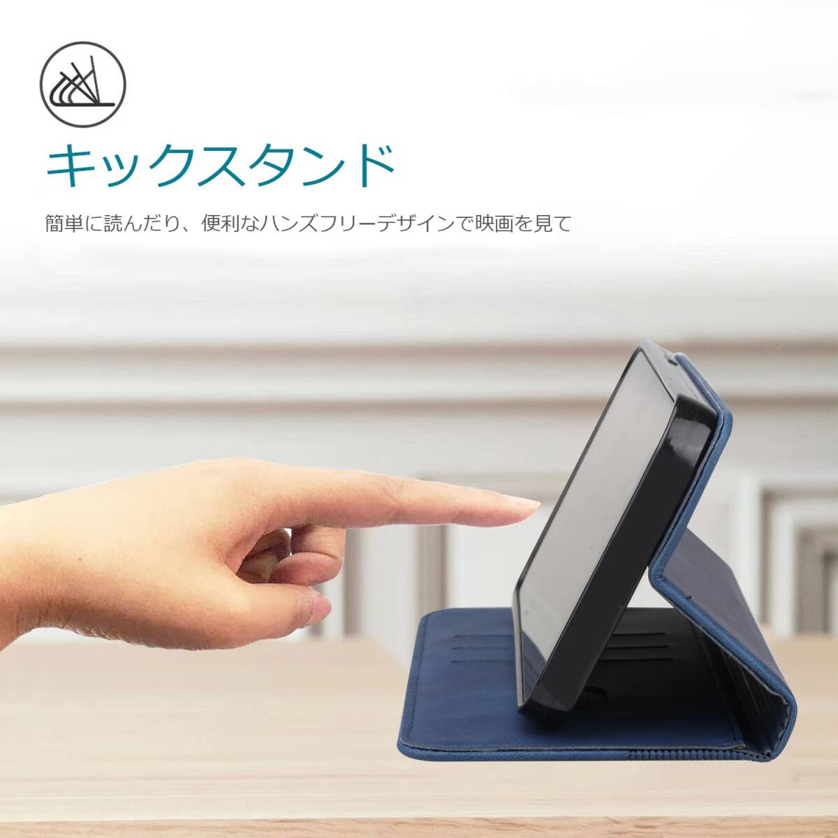 ケースに横置きスタンド機能が付いているので、手に持たず動画の視聴などを楽しむことができます。
