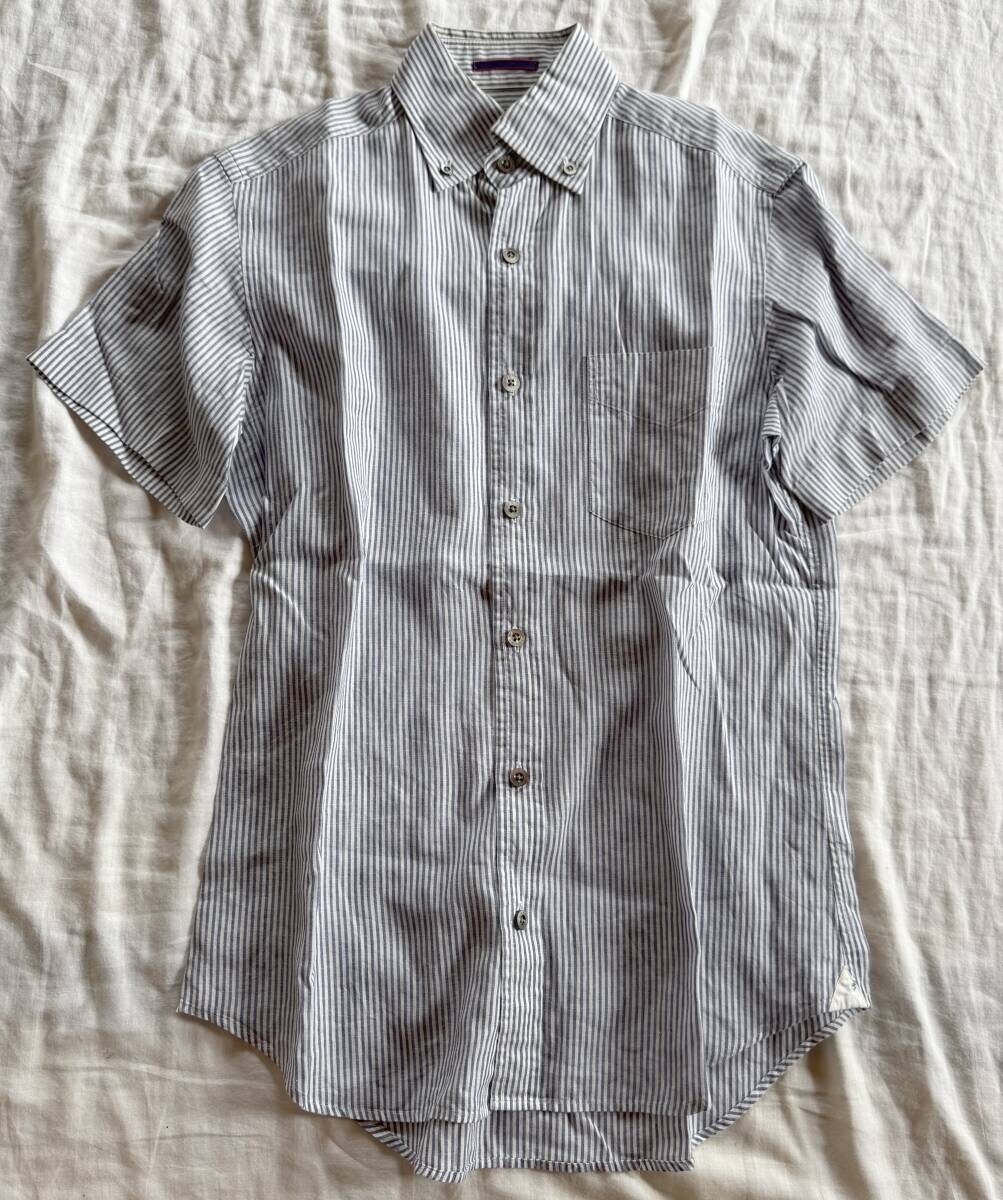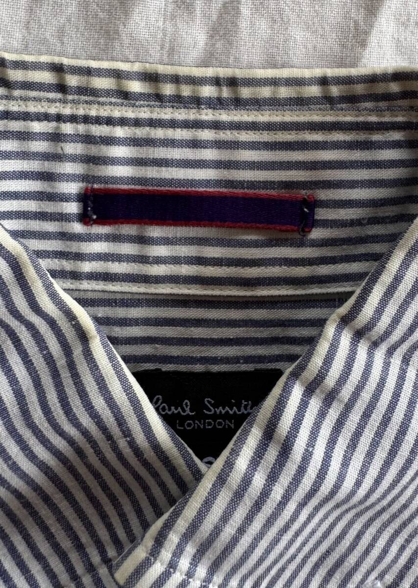 ポールスミス 半袖シャツ 麻 ヘンプ ボーダー ボタンダウン 高級タイプ s