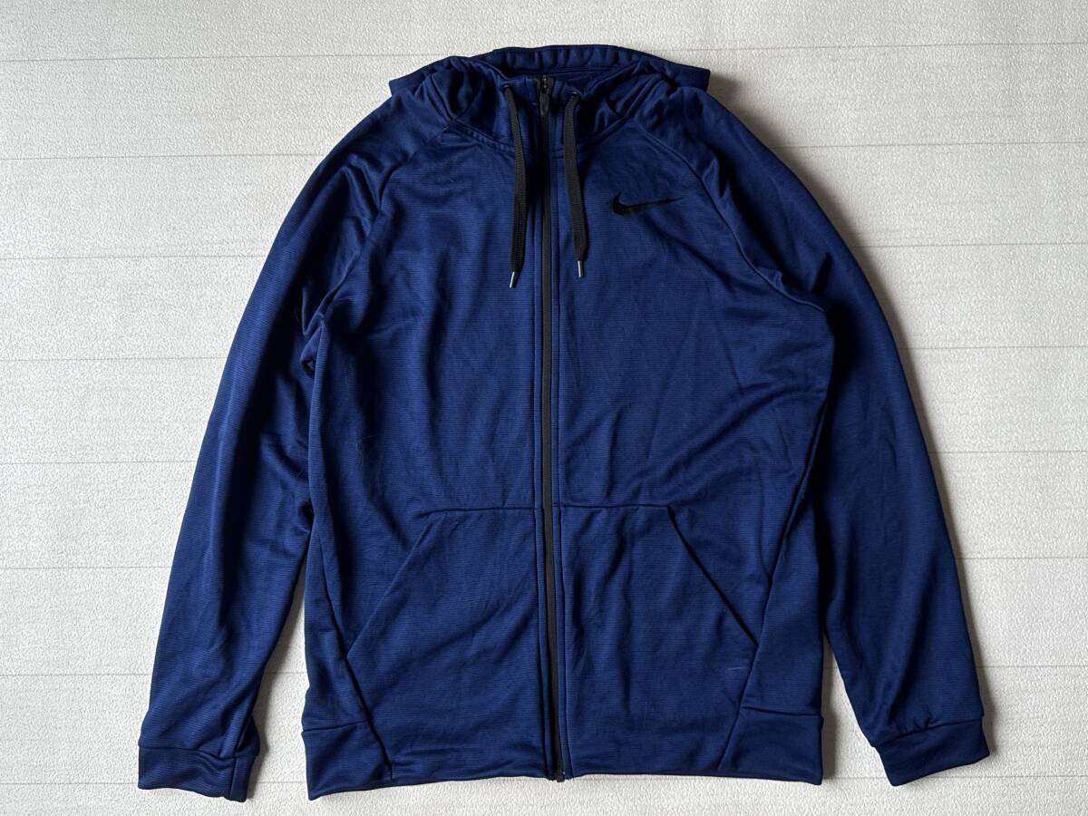 ☆送料無料☆ NIKE ナイキ USA直輸入 古着 ラグラン ジップアップ DRI-FIT ロゴ パーカー メンズ M ダークブルー トップス 中古 即決