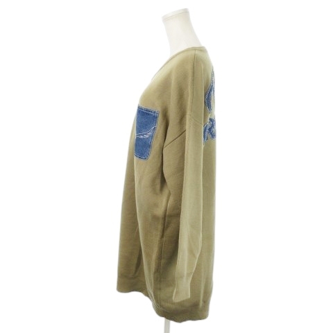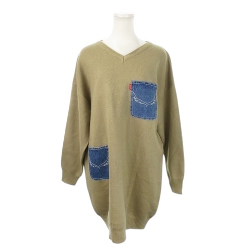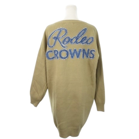 ロデオクラウンズ Rodeo Crowns ロングニット セーター Vネック 長袖 ポケット ロゴ デニム F 茶 カーキ /MN16 レディース