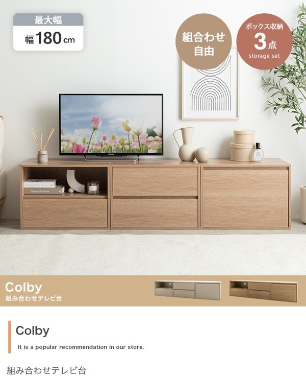 ※現在ご覧の商品ページはグレージュのご購入ページとなります。 ヤフオクの仕様上単一ページに複数バリエーションを掲載することができませんので、他バリエーションが希望の場合は別ページでご購入お願い致します。 思い通りの収納スタイルにカスタムできる組み合わせテレビ台『Colby』シリーズの3点セット。 コンパクトながら大容量の収納力で、散らかりがちな小物をまとめて整理可能。 縦積みもできるため、チェスト、キッチン収納、サイドテーブル、ローボードなどにもカスタムでき、シーンや環境に合わせてマルチに活躍します。 配達業者を指定いただくことはできません。 沖縄・離島に関しましては、別途配送料が必要となります。 北海道への配送も別途配送料が必要になる場合がございます。 ※別途送料が発生する場合は後ほどご連絡させていただきます。 タイミングによっては在庫切れの場合があります。
