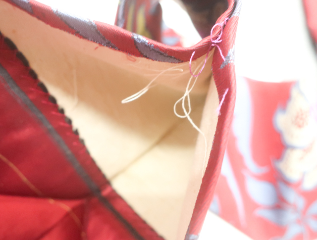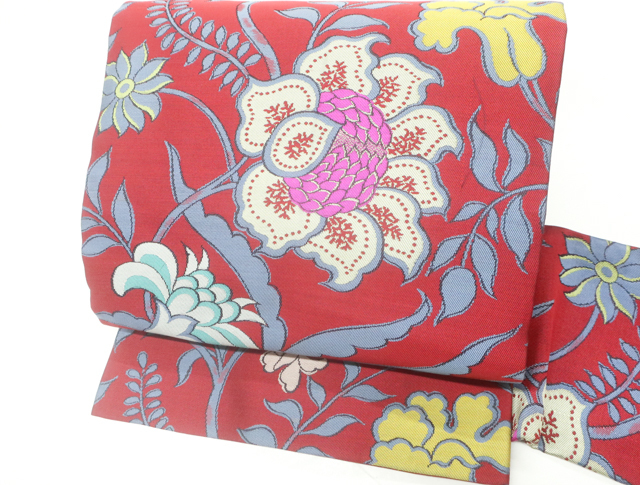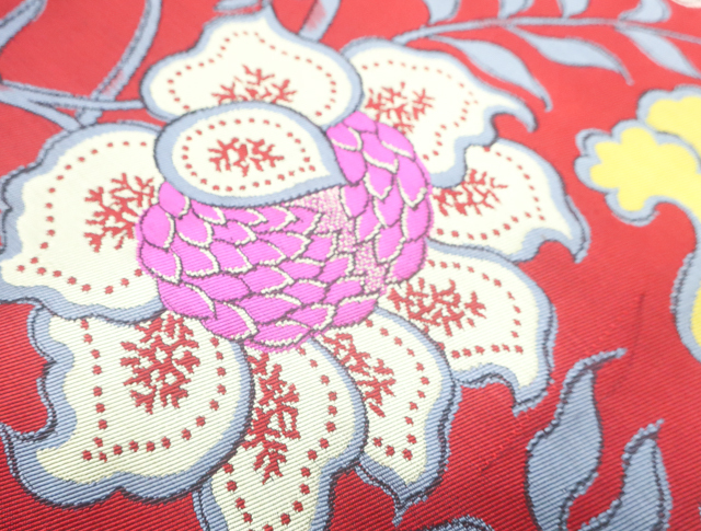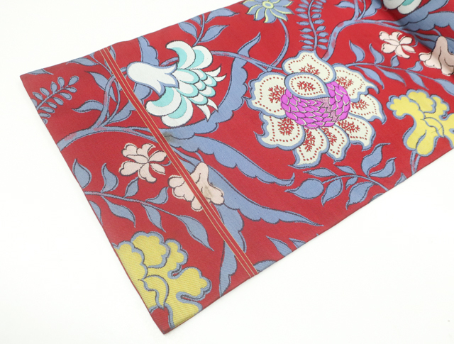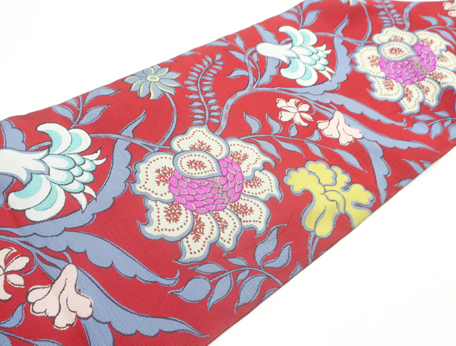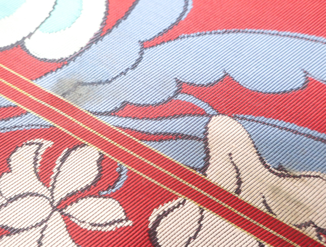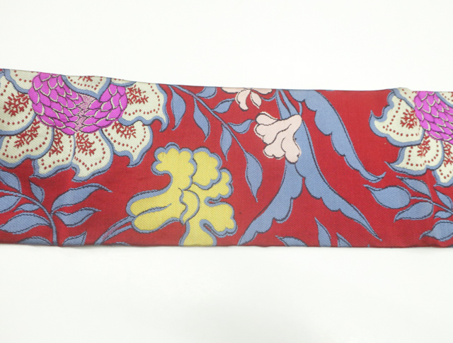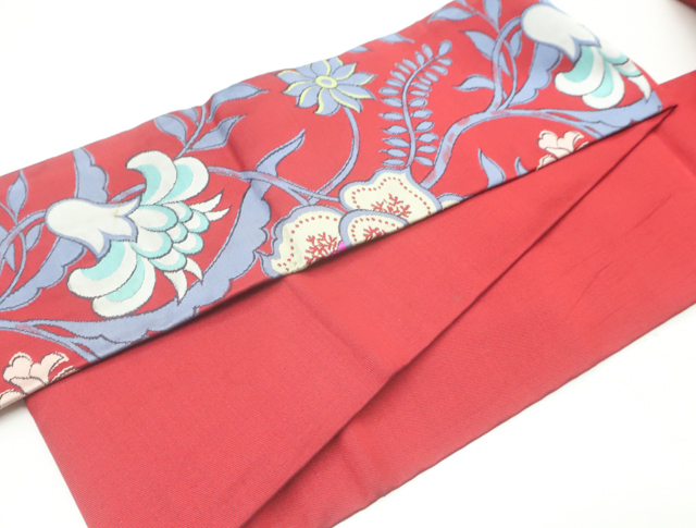 リサイクル商品の為、縫いどまりに解れがございます。 たれ先上部、無地場に汚れがございますがご着用いただけると存じます。 地色は、赤 です。 1枚目の画像が近いお色かと思われます。 素材は正絹です。 |