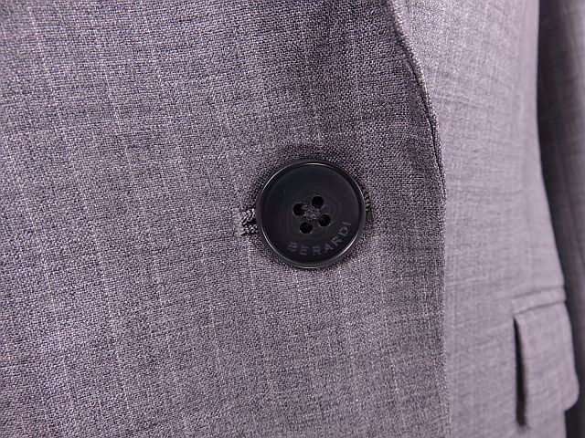 洗練されたグレーが知的な印象を引き立てるBERARDIのパンツスーツ。上質な仕立てと美しいシルエットで、大人の自信と格を纏えるLLサイズです。