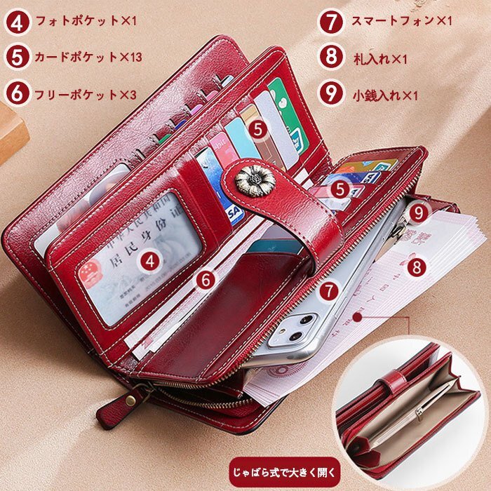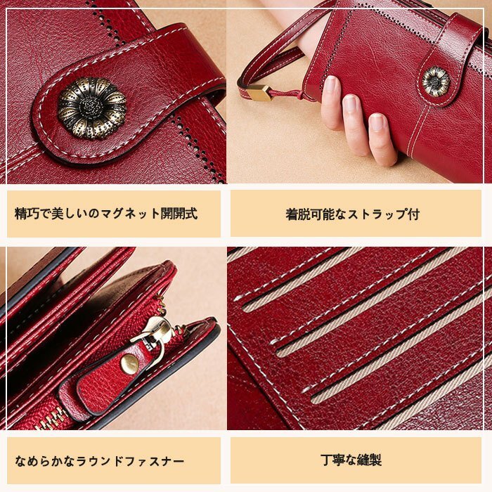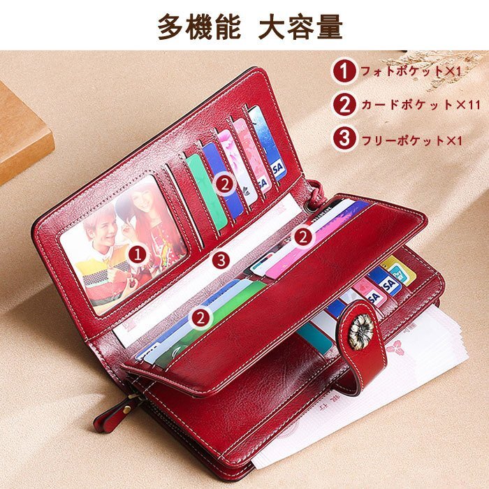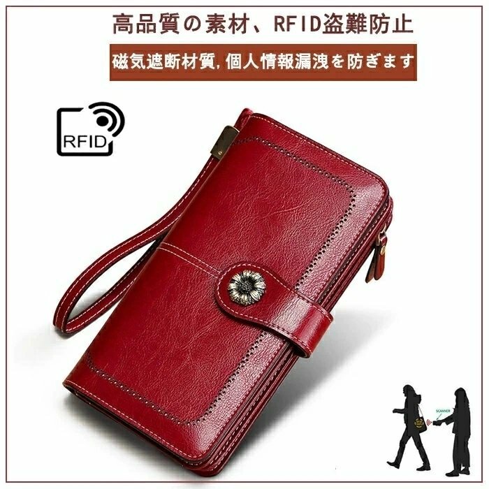 長財布 レディース 財布 人気ブランド財布 本革 レザー 財布多機能 大容量小銭入れ カード人气財布女性用RFID保護機能【赤褐色】