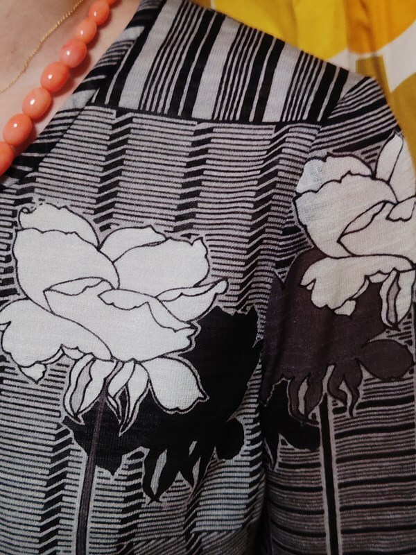 黒グレー白のお花x幾何学柄がとっても素敵なヴィンテージ