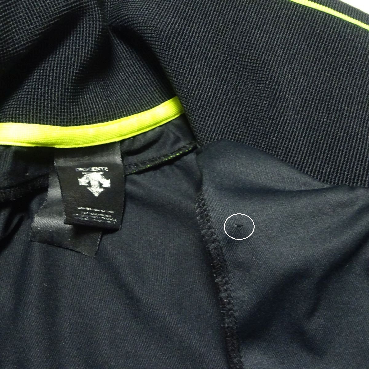 状態 それなりの着用感と左肩および首元下の裏地に小さな穴(ともに画像○印)はありますが、着用に支障をきたすほどのダメージではなく並程度かそれよりやや劣る状態の品ながらまだご着用頂けると思います。