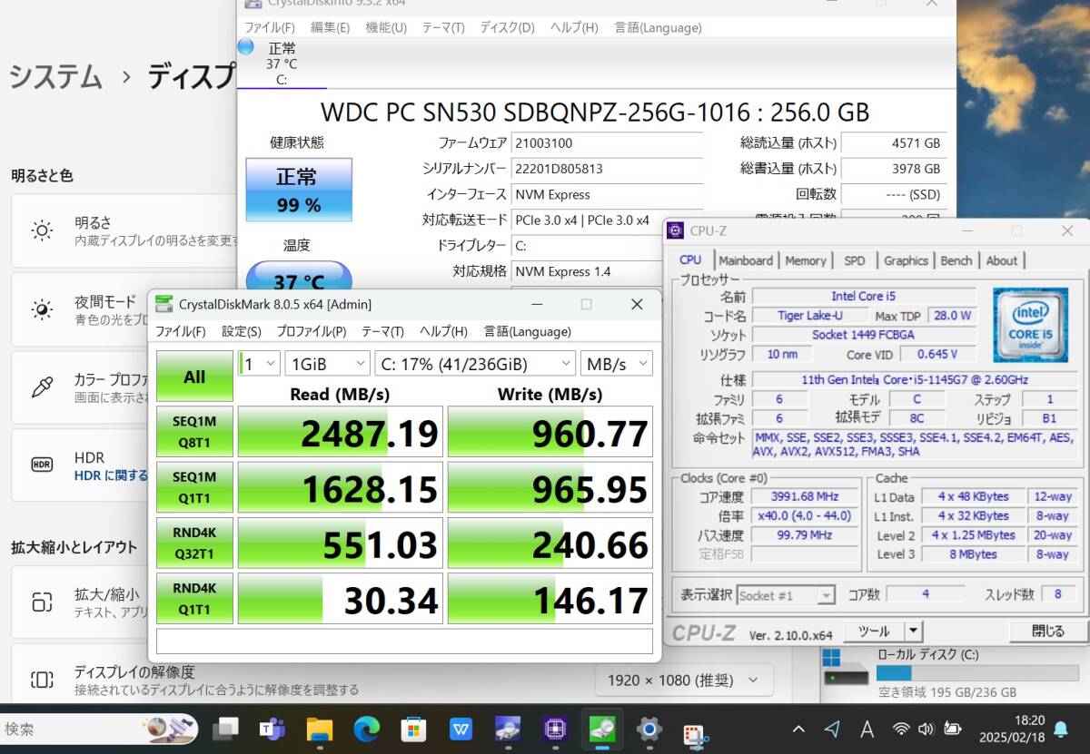CPU: 超高速 Intel 卓越性能 第11世代Core i5-1145G7 2.6Ghz、 4コア8スレッド (ターボ・ブースト利用時の最大周波数 4.4GHz) |