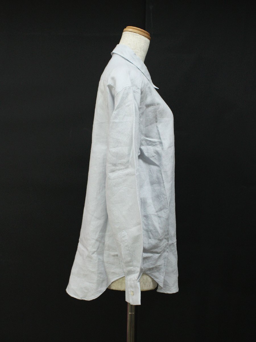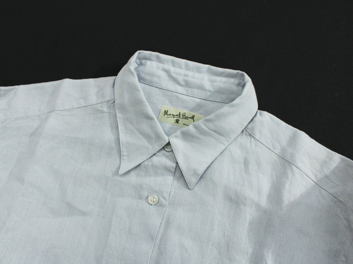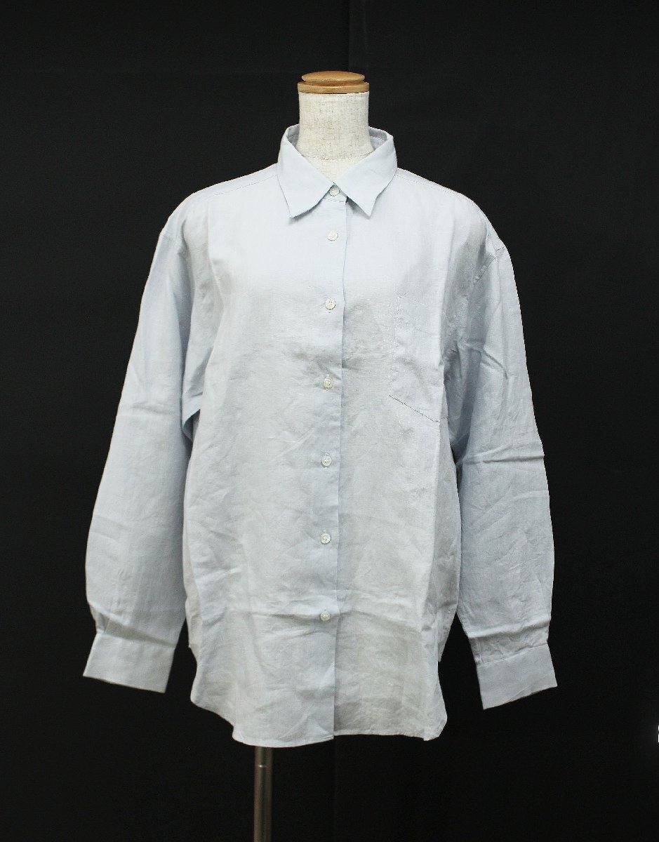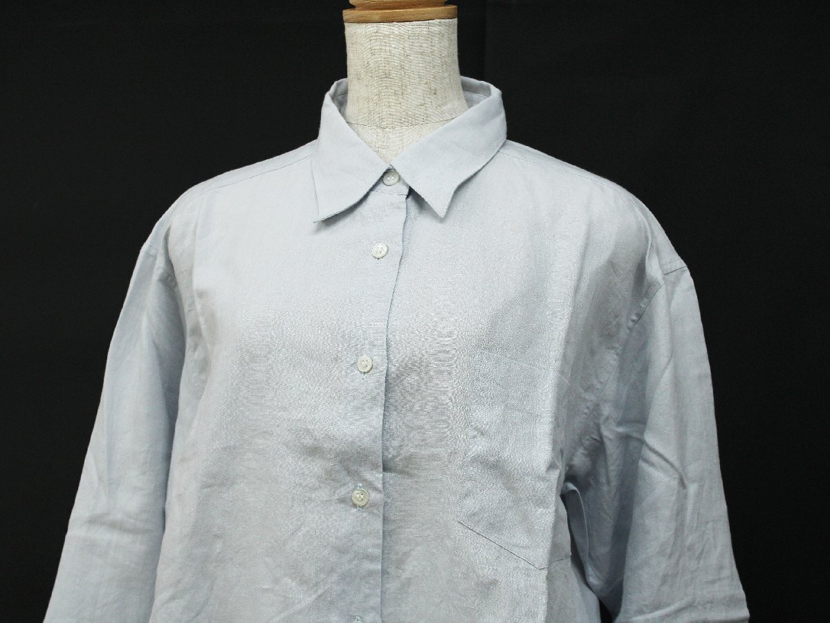 美品 マーガレットハウエル リネン100%無地襟付き長袖シャツブラウス 青系Ⅱ rl716