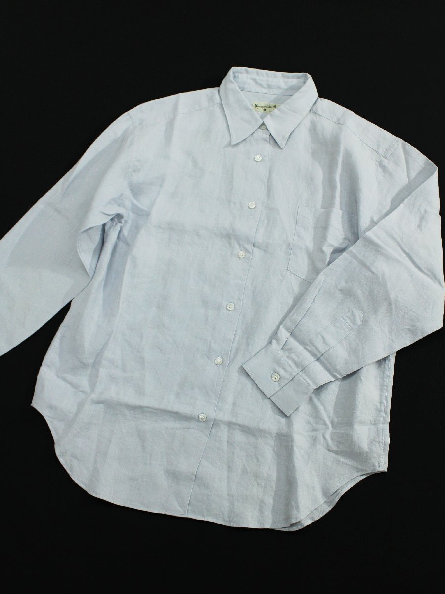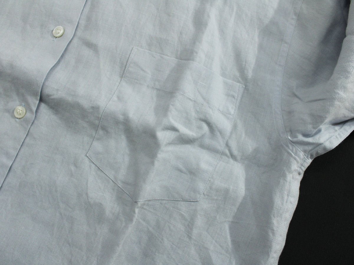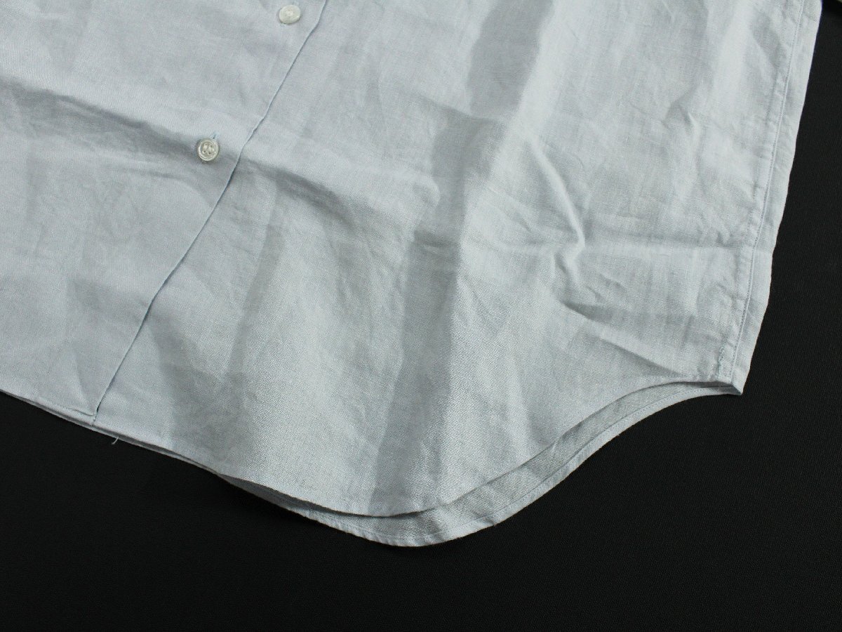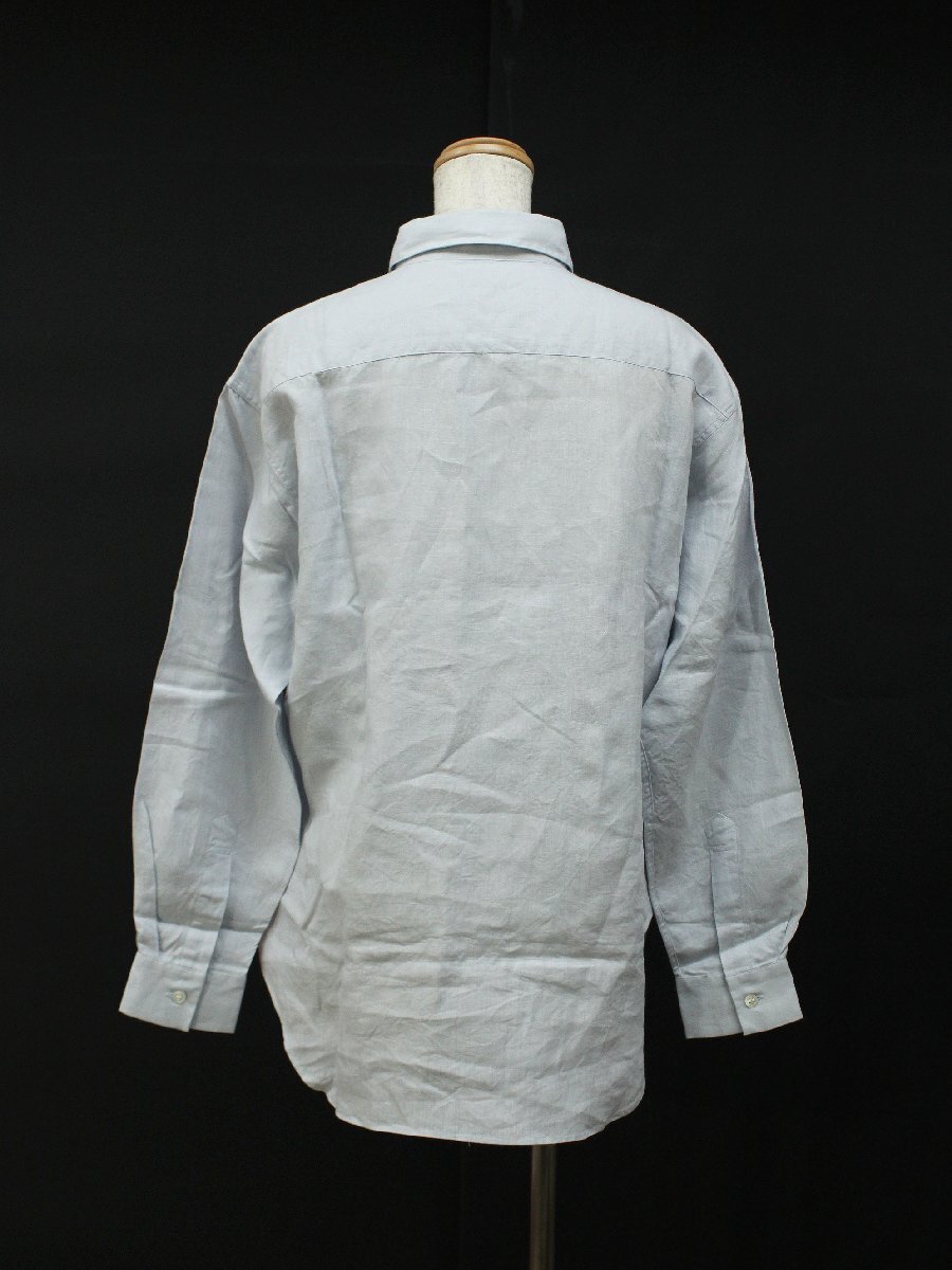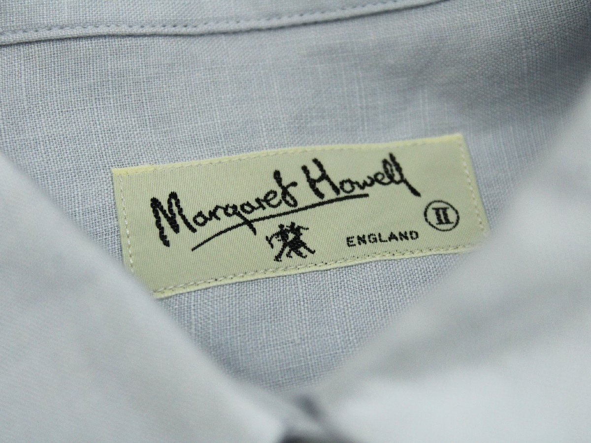 美品 マーガレットハウエル リネン100%無地襟付き長袖シャツブラウス 青系Ⅱ rl716