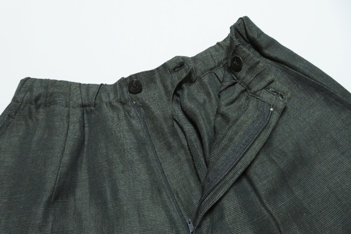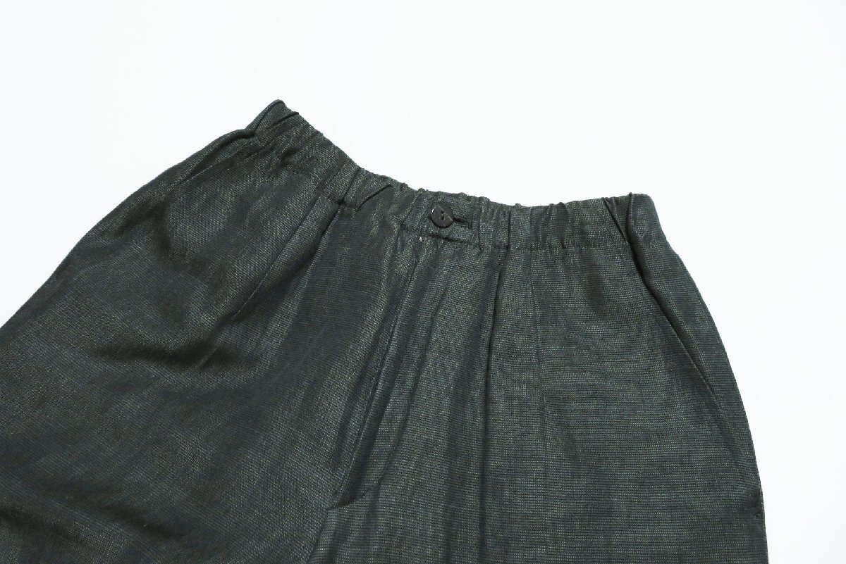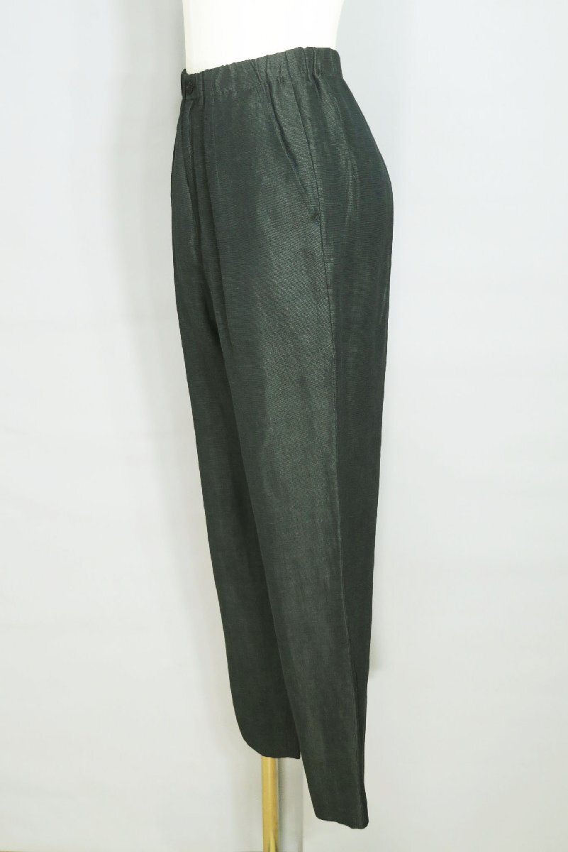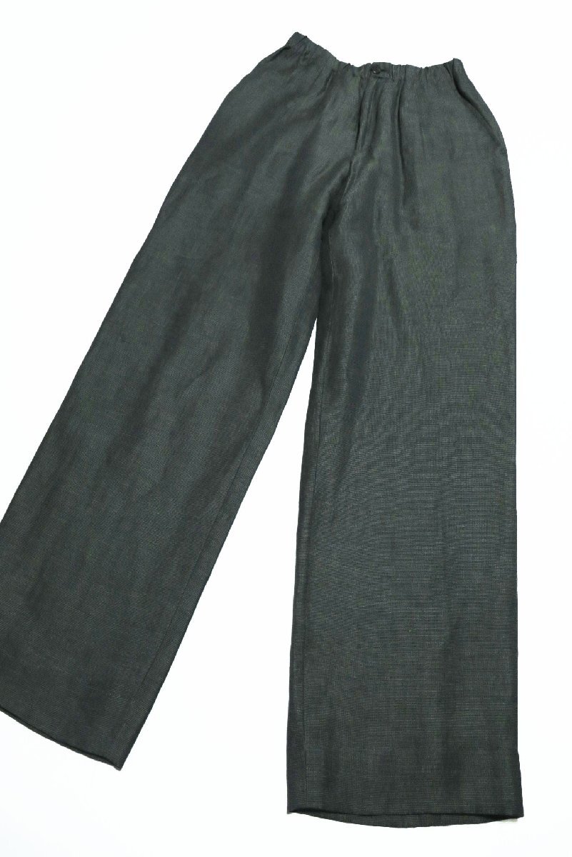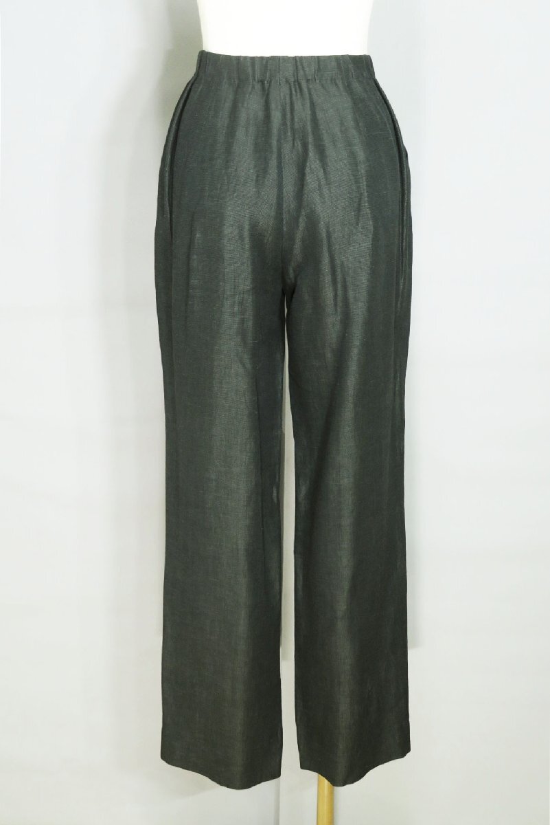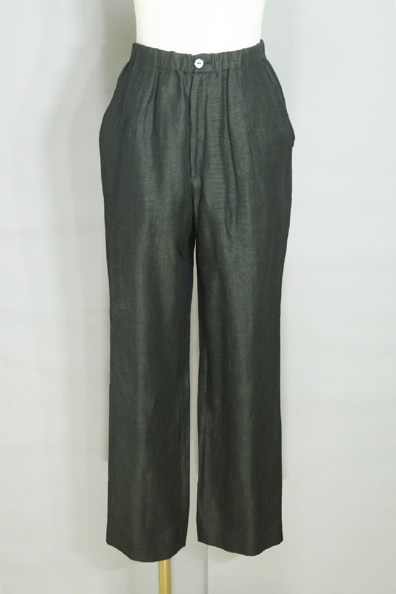 ヨーガンレール/リネンシルク ウエスト総ゴムストレートパンツ:M/深緑nl725