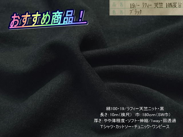 ●○綿100 19/ラフィー天竺ニット やや薄 ソフト 黒 10mSW巾○●