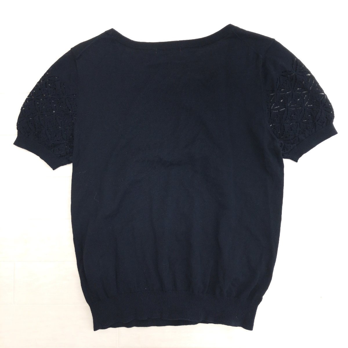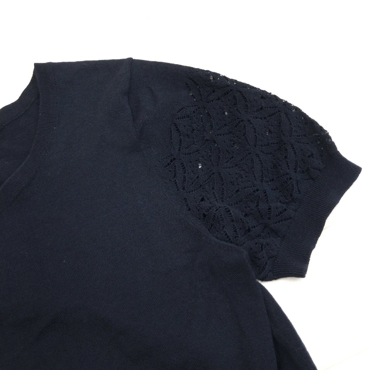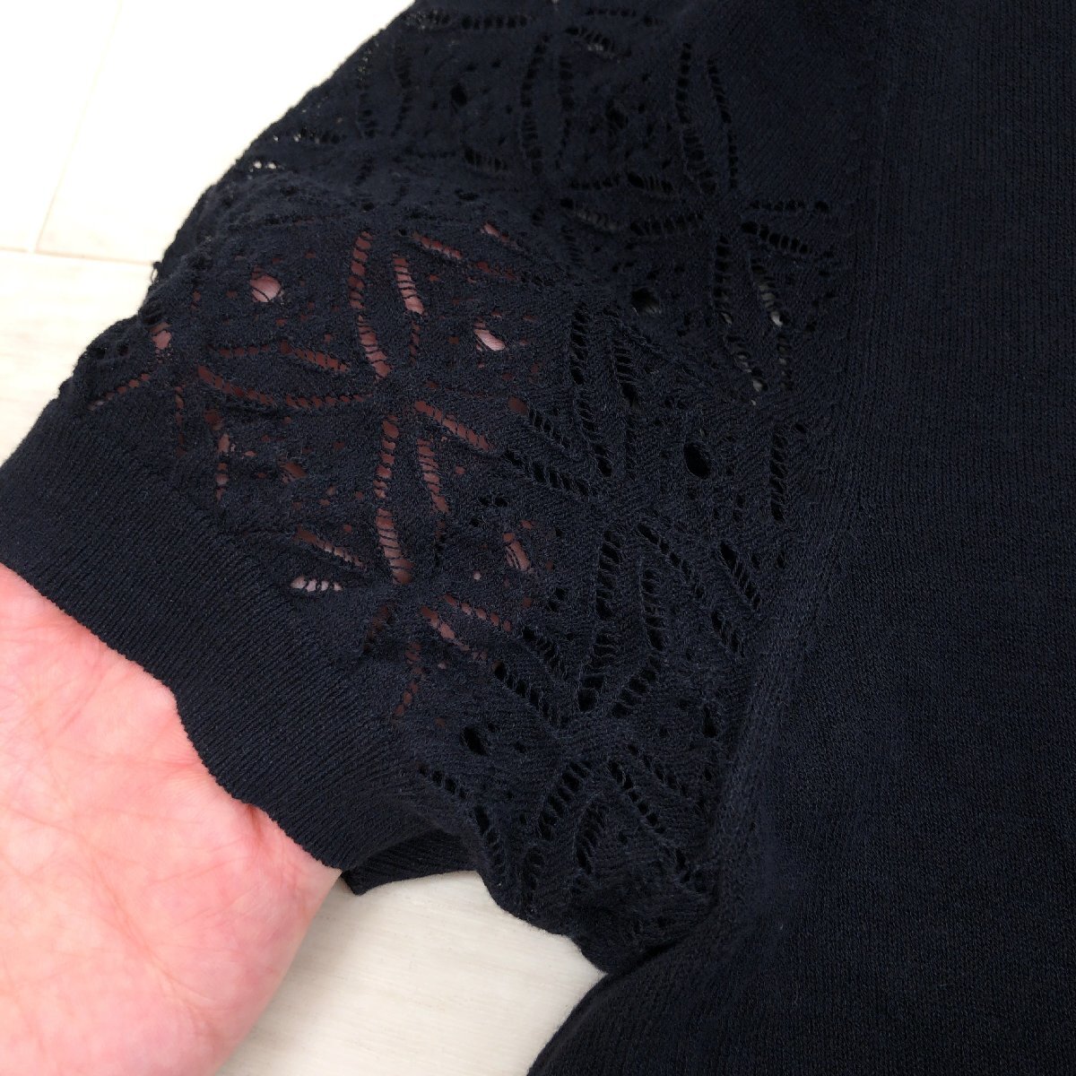 AMACA アマカ コットン100% レーススリーブ サマーニット セーター 38(M) 黒 ブラック オープンネック カットソー 半袖 レディース 婦人