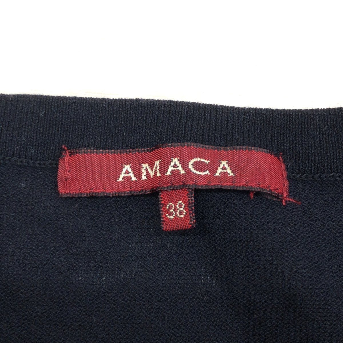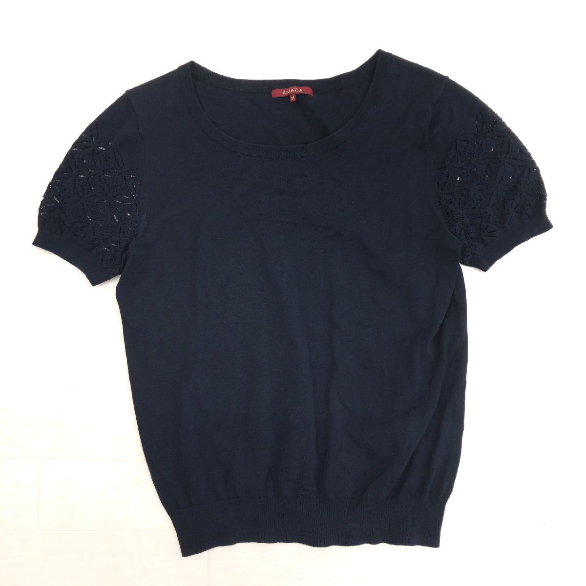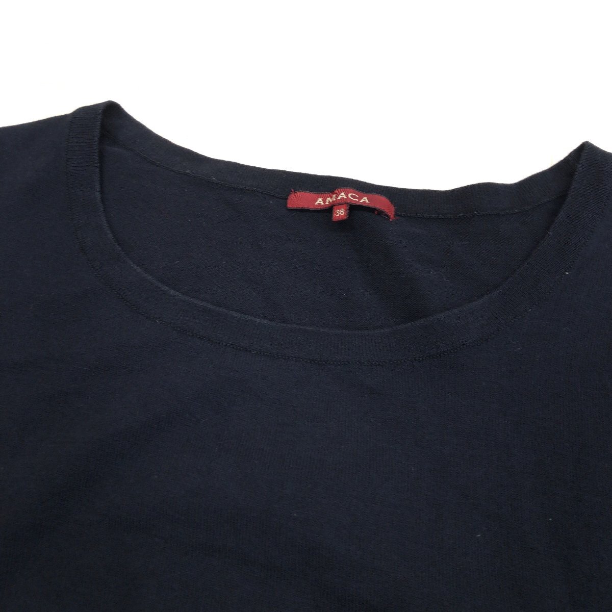 AMACA アマカ コットン100% レーススリーブ サマーニット セーター 38(M) 黒 ブラック オープンネック カットソー 半袖 レディース 婦人