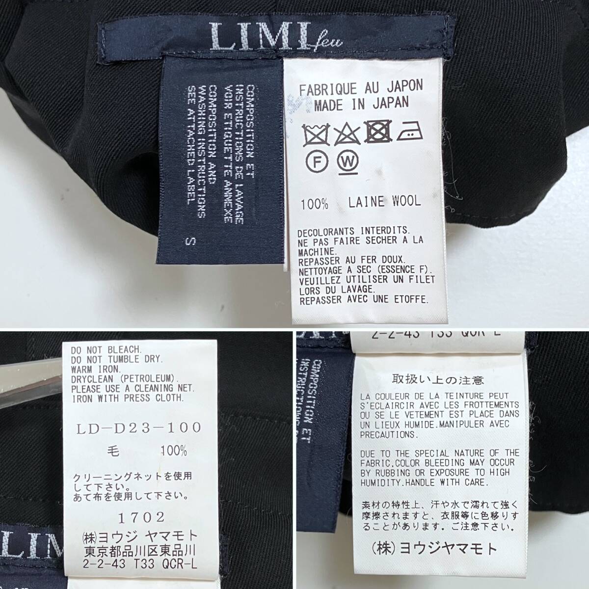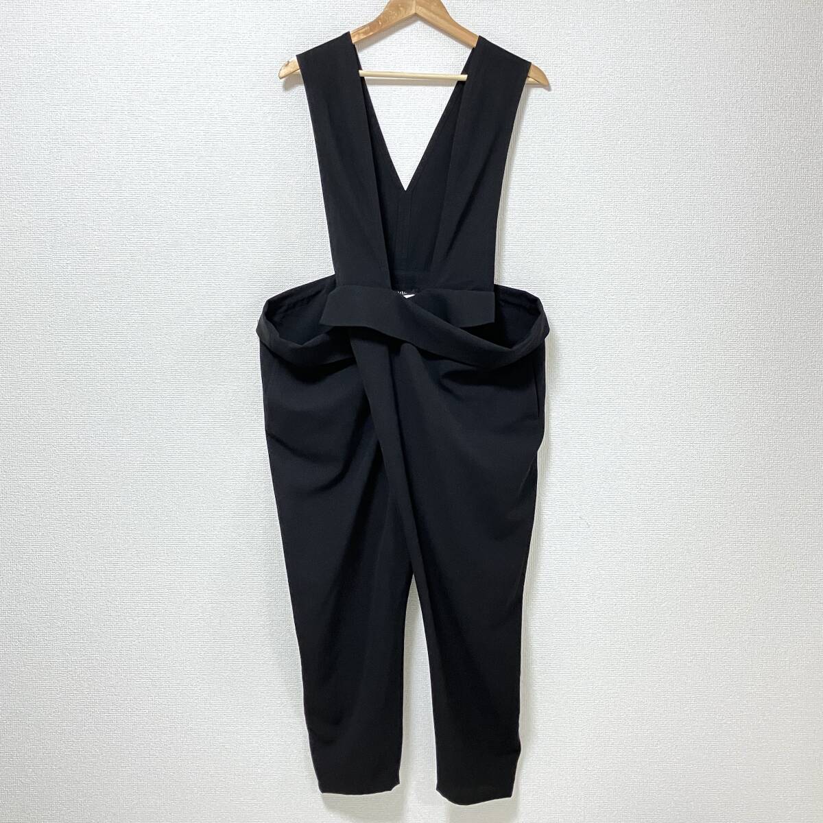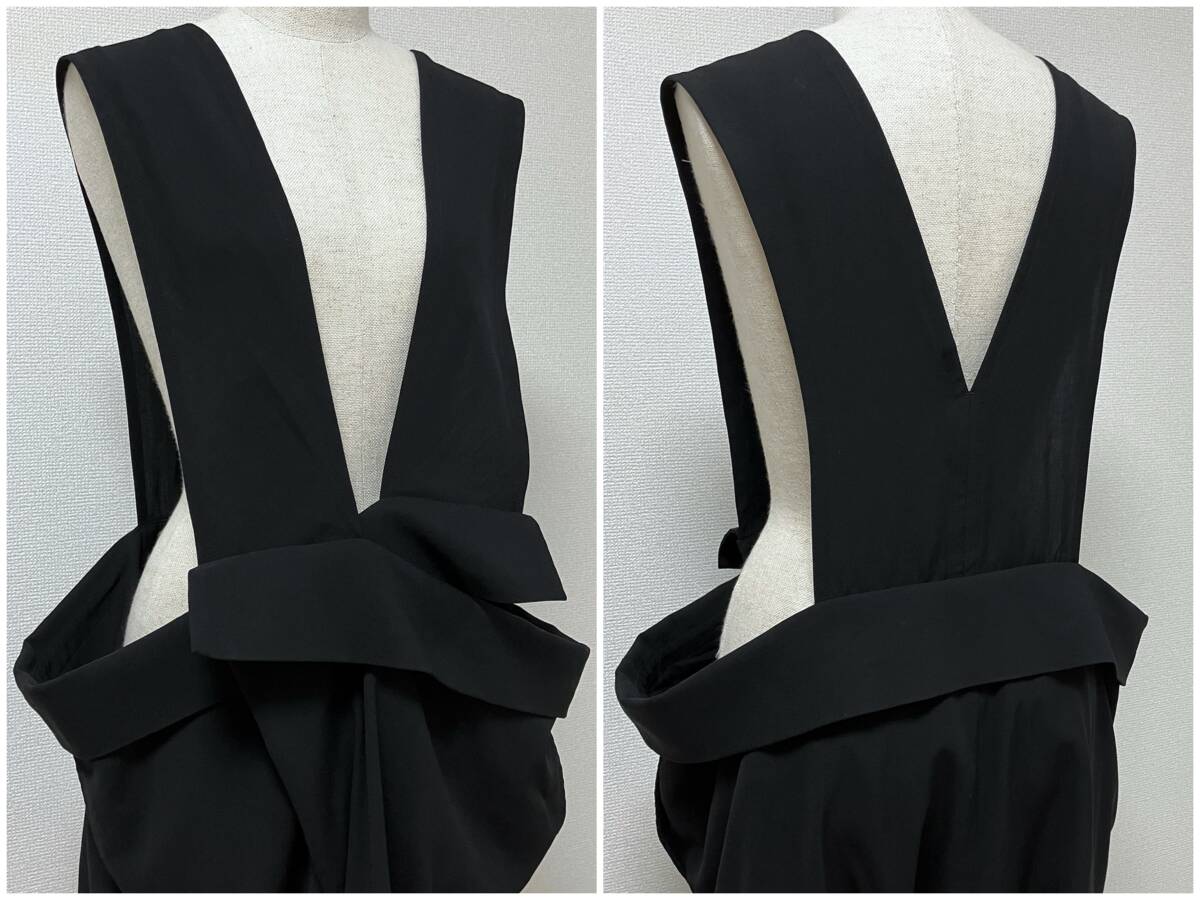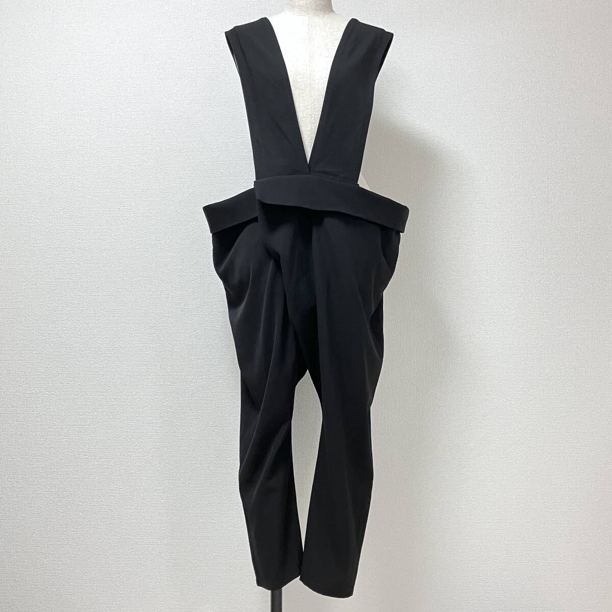 LIMI feu Yohji Yamamoto ウールギャバ 変形 サロペット 無地 黒 Sサイズ リミフゥ オールインワン 吊り パンツ サルエル archive 5060455