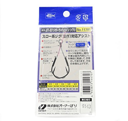5/0号・混合カラー No.11785・・Style:5/0号・ジガーライト ツインシワリ JT-27 (4/0・5/0)《オーナー アシストフック》●フォールバイト対応フック「シワリ」採用●全てが繊細仕上げです。ジグのアクションがフルに活かせます。●全てにおいて高品質パーツを使用●高強度組糸貫通根付け説明 .