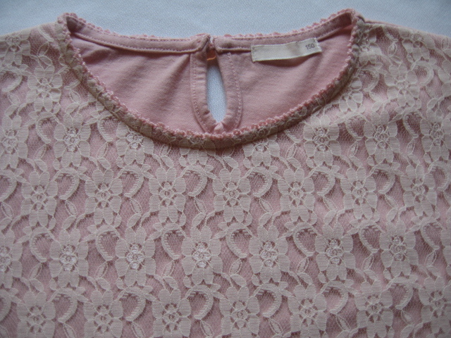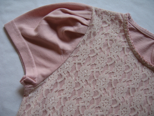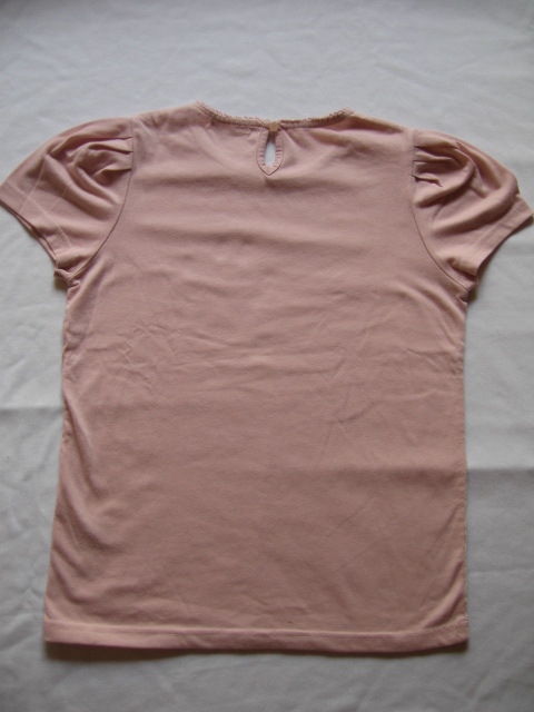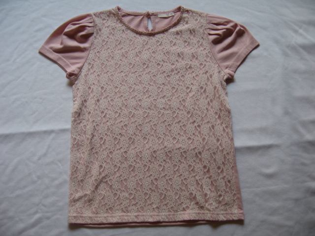 G U カットソー ピンク 150 胸前レース パフスリーブ 背ボタン | ||