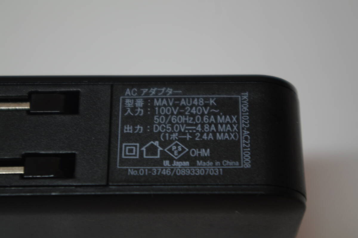 MAV-AU48-K ACアダプター USB電源タップ 4ポート