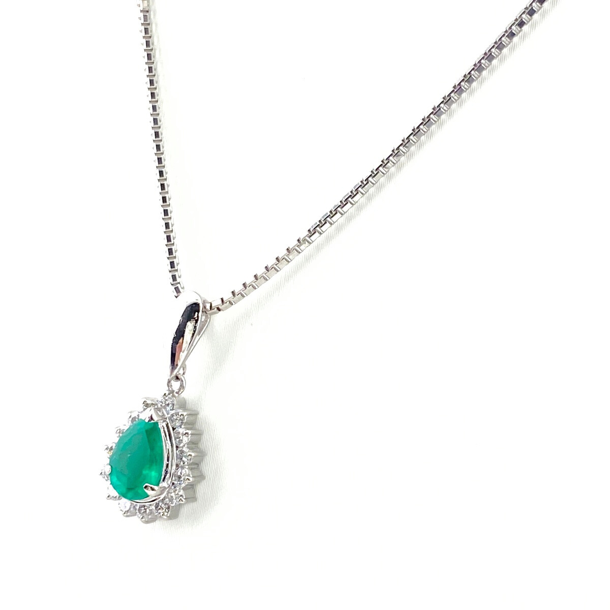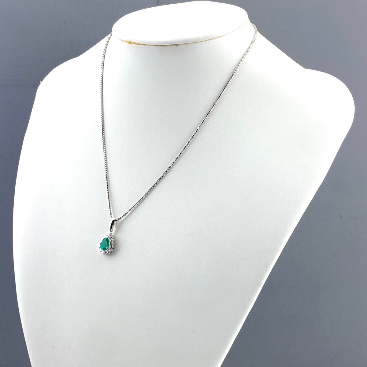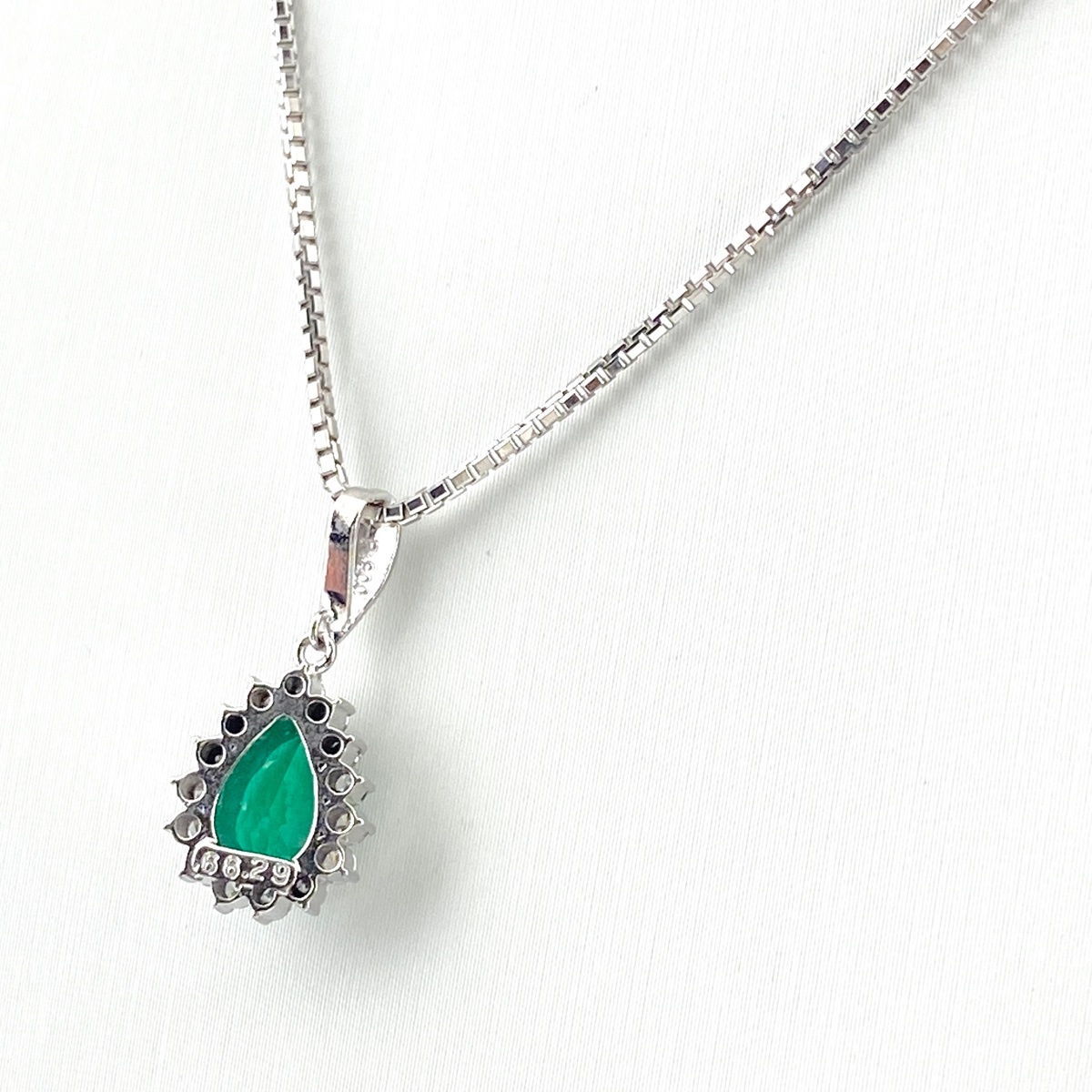 トップ:Pt900、チェーン:Pt850 エメラルド:0.66ct、メレダイヤ:0.29ct 中古品の為、若干のキズや汚れ、エメラルドにキズがございます。 |