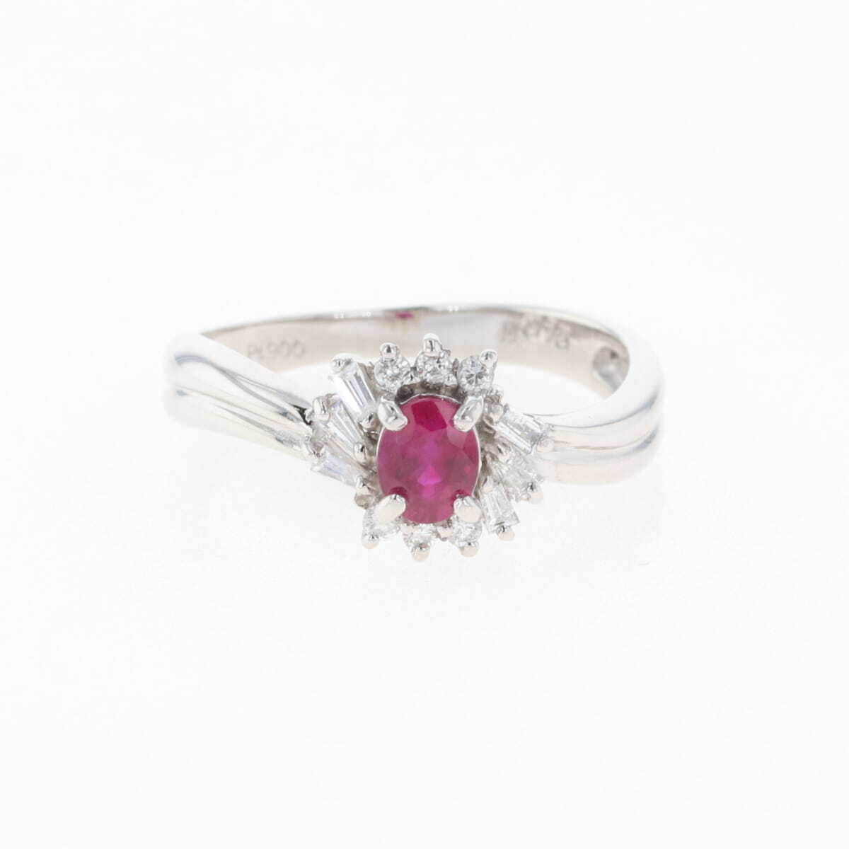 ルビー デザインリング プラチナ 指輪 メレダイヤ リング 9号 Pt900 ルビー ダイヤモンド レディース 【中古】 |