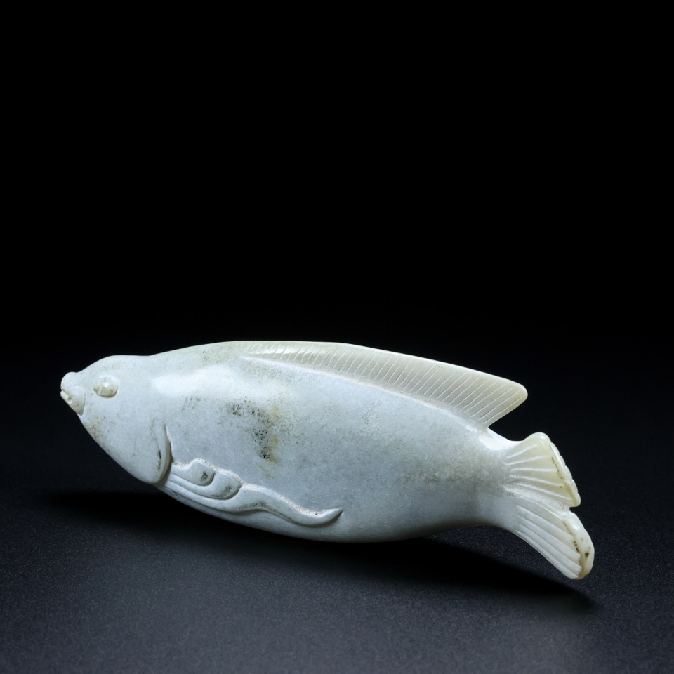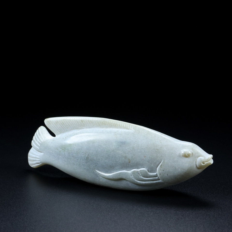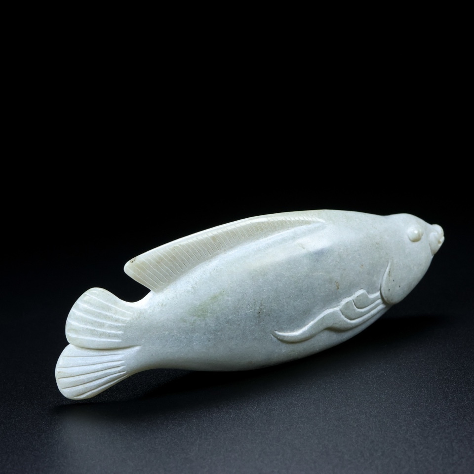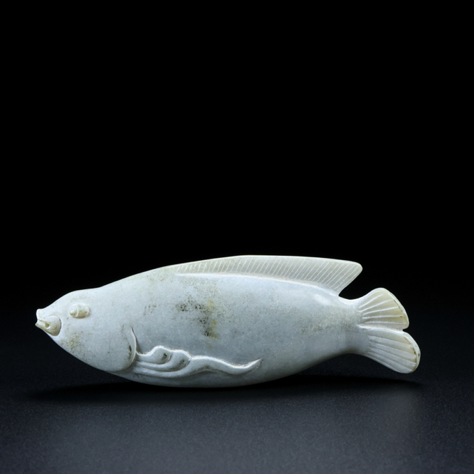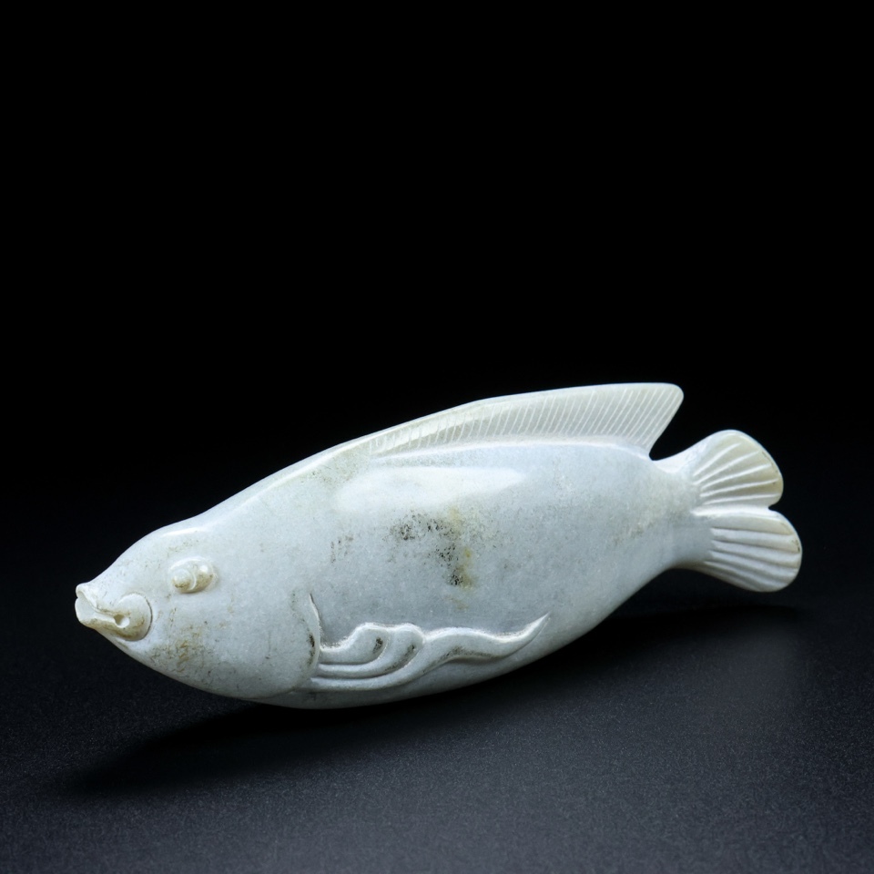 旧 清代 和田玉 玉魚 天然石 時代物 中国古美術 古賞物 古置物 唐物 S78