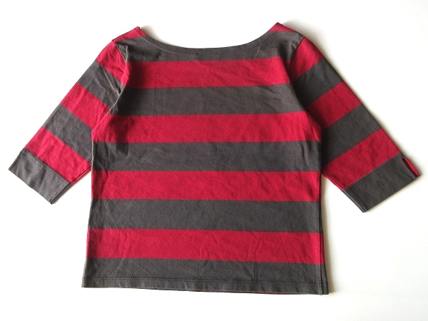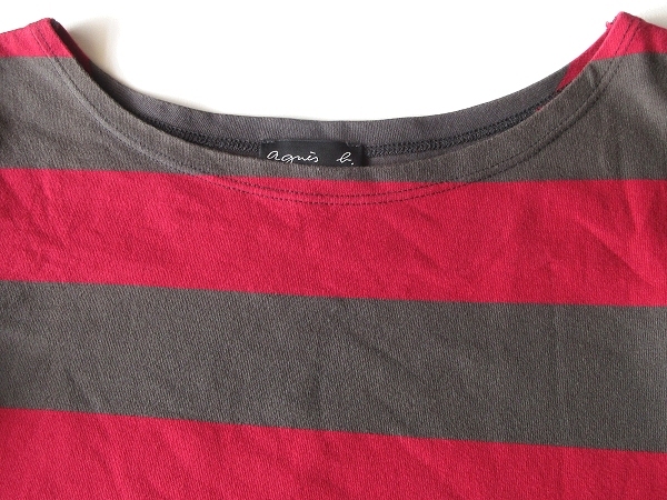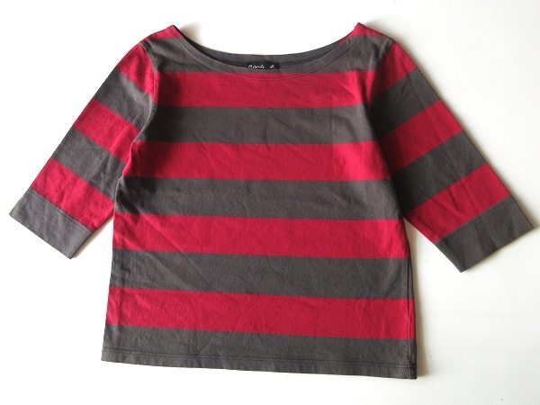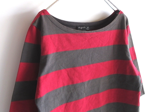 ネコポス対応 agnes b. アニエスベー コットン 太ボーダー 七分袖 カットソー Tシャツ T2 カーキチャコール レッド 日本製