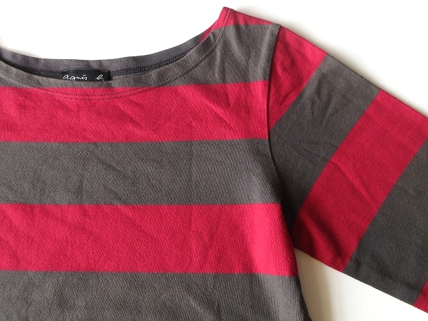 agnes b. 七分袖 ワイドボーダーカットソー