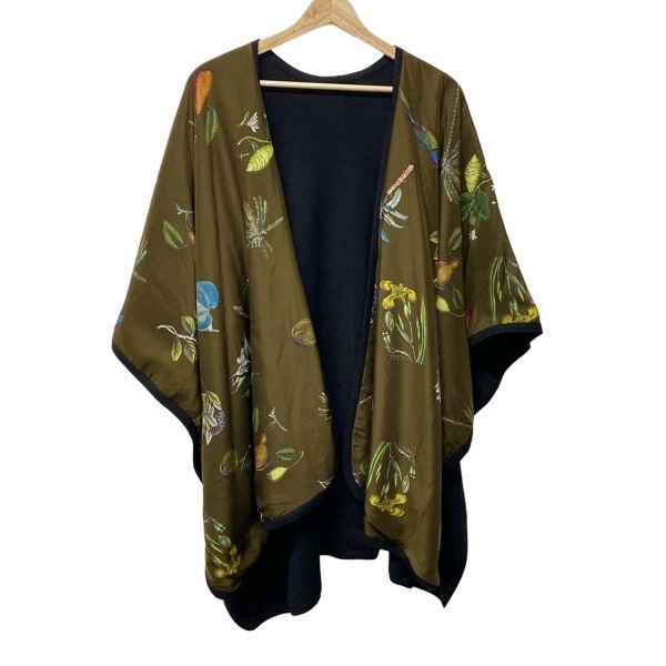 キャバン CABaN ポンチョ サイズF - 黒×ダークブラウン×マルチ レディース リバーシブル/秋/冬 ジャケット