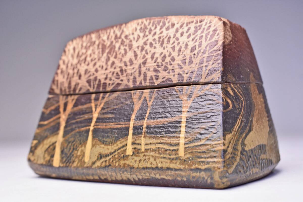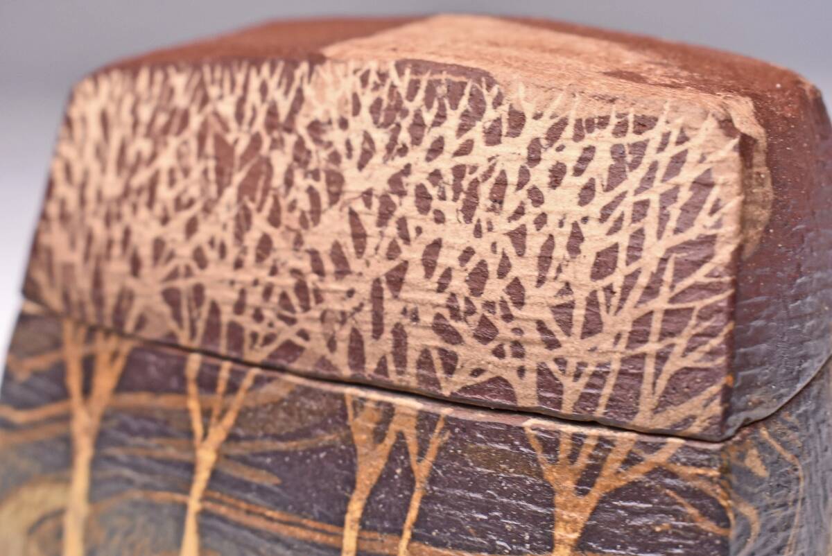 サイズは 124mx83mmx高さ84mm です。 人気陶芸家 佐伯守美 氏の 作品です。 樹木文ですが、こちらの作品は 練上になっています。 宅配便80サイズにて発送します。 他にも多数出品しています。同梱対応いたします。