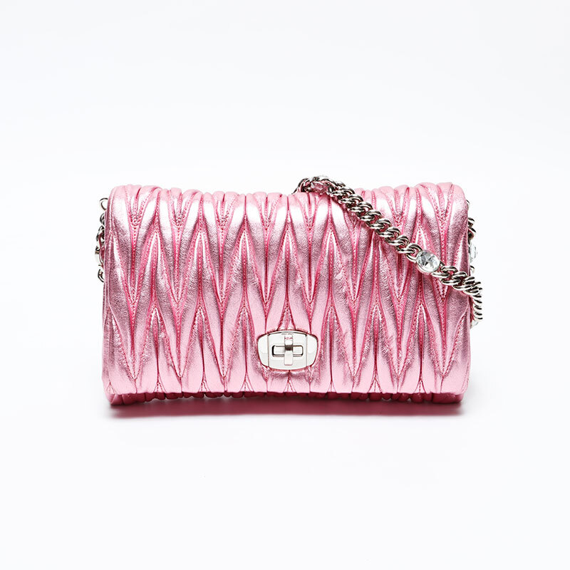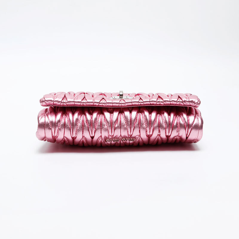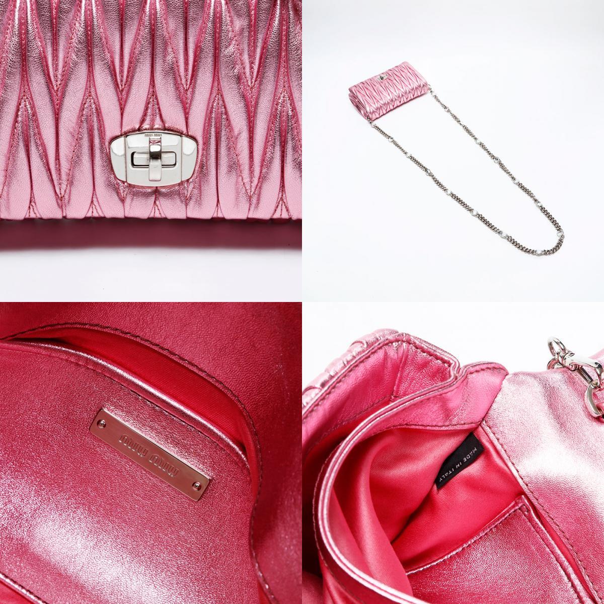 ミュウ ミュウ Miu Miu ショルダーバッグ マテラッセ クリスタル メタリック ピンク