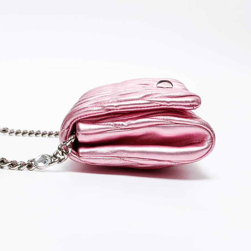 極美品 Miu Miu マテラッセ クリスタル メタリック ショルダーバッグ ピンク