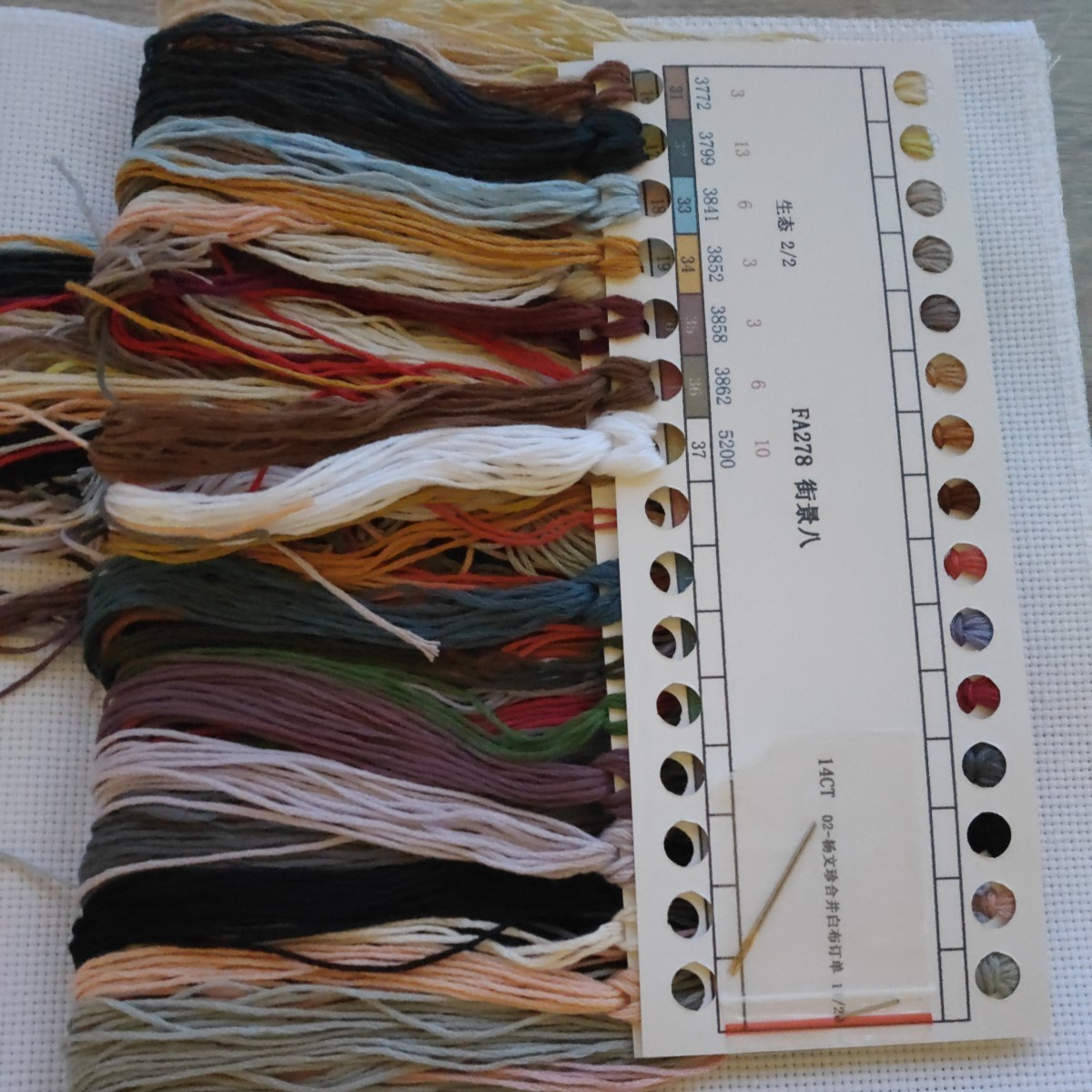 刺繍糸は余分に見積もって入っていますが、製作中もし足りなくなった場合は、ご自身でご用意ください。DMCの糸番号に対応しています。検品のため1度開封しています。