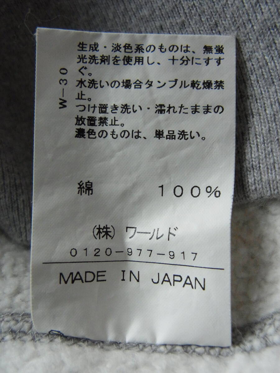 ドレステリアの日本製で吊り裏毛のジップアップパーカになります。USEDで着用感と、フードに付属していたスピンドルが欠損しています。それ以外には特に目立ったダメージ等は御座いません。