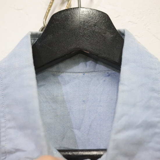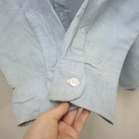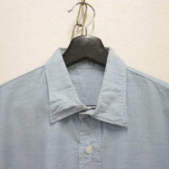商品名 h744 70sビンテージ 長袖シャツ■1970年代製 約XLサイズ ブルー 青 無地 コットン アメカジ 古着 古着卸 オールド 激安 希少 検 90s 80s