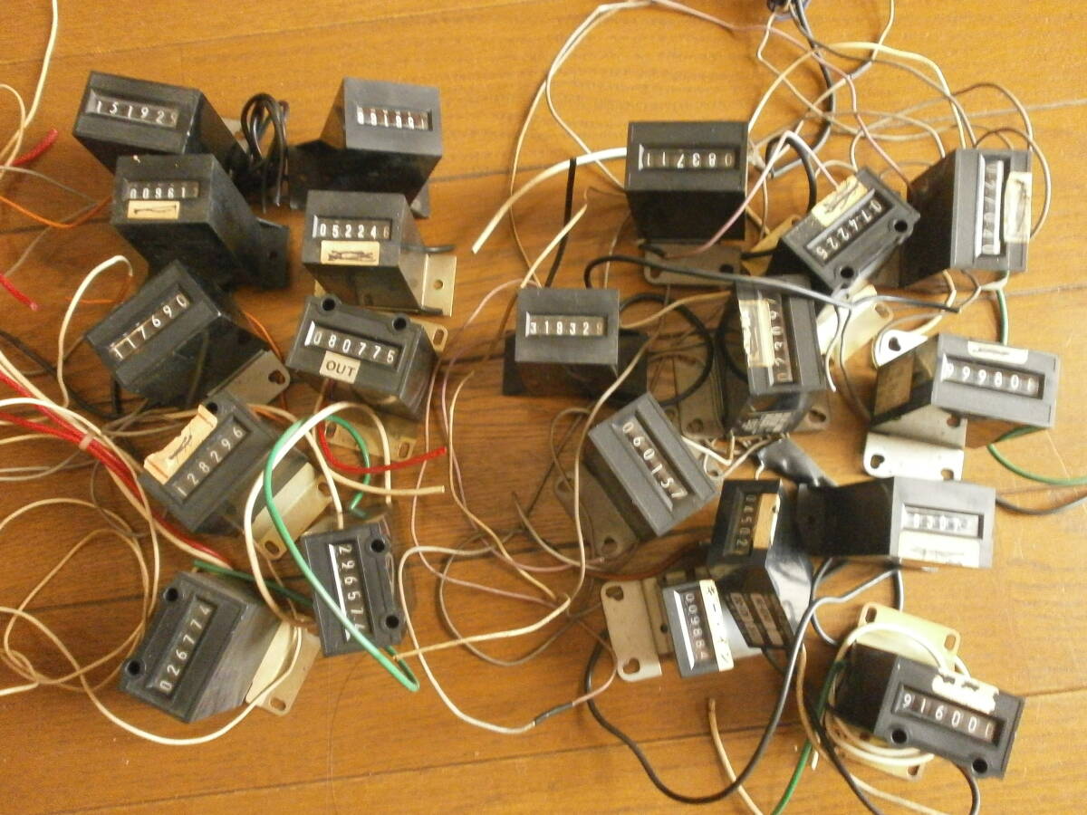 アーケードテーブルゲーム筺体から、取り外して保管している 6V9個/12V11個用、中古カウンターメーター合計20個です。