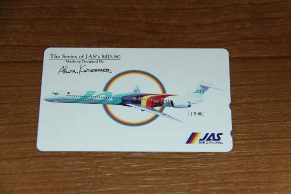 JAS ジャパンエアーシステム (未使用・新品) The Series of JAS's MD-90 黒澤明デザイン・サイン テレカ 1号機です。