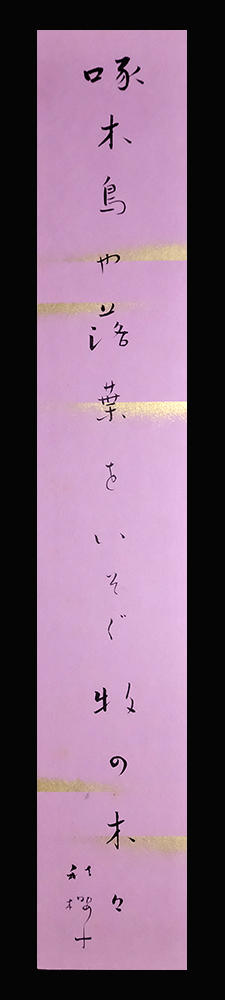 【翻字】 「啄木鳥や落葉をいそぐ牧の木々 秋桜子」 紙本(金霞引虹色地)肉筆未装短冊1点 作品寸法:36.2cm x 6.0cm 商品状態:極美品。実際の品を画像にてお確かめ下さい。 ★本品は印刷ではなく肉筆保証の作品です。 ★本品は真作保証の作品です。 水原秋桜子(みずはらしゅうおうし) 1892-1981。大正-昭和時代の俳人。明治25年10月9日生まれ。高浜虚子(きょし)に師事,「ホトトギス」で山口誓子(せいし)らと4S時代をきずく。昭和6年主宰誌「馬酔木(あしび)」で虚子の写生観を批判,新興俳句運動の口火をきった。39年芸術院賞,41年芸術院会員。産婦人科医で,昭和医専の教授もつとめた。昭和56年7月17日死去。88歳。東京出身。東京帝大卒。本名は豊。句集に「葛飾(かつしか)」など。 出典:講談社/デジタル版 日本人名大辞典+Plus |