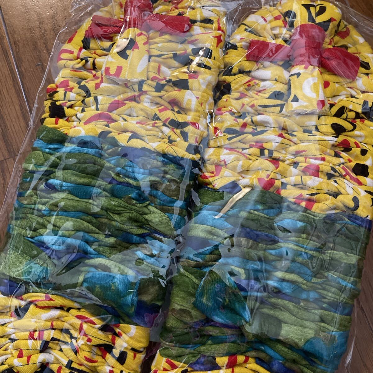 新品未使用の布のほか、リサイクルの布を使用しての手作りですので左右の大きさ・デザインに若干の差異がある場合がありますのでご了承ください。