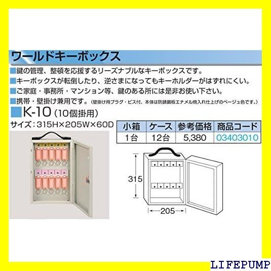 水上金属 鍵箱 ワールドキーボックス K-10 携帯・壁掛け兼用型 10本掛け 562