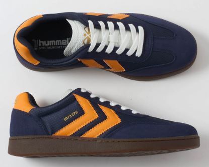 今季注目の“レトロスポーツ”スタイルを現代的にアップデートした、HUMMELの「VM78 CPH」。1978年に登場したクラシックなトレーニングシューズをベースに、ストリート感漂うデザインとトレンドカラーをプラス。 ネイビーベースにオレンジトパーズカラーのシェブロンを効かせた配色は、ジェンダーレスでありながらスタイリングのアクセントにも最適、リップストップナイロンメッシュにスエードを合わせたモデルです。 今、再び人気を集めるガムソールも、コーデに程よい“抜け感”をプラスしてくれます。