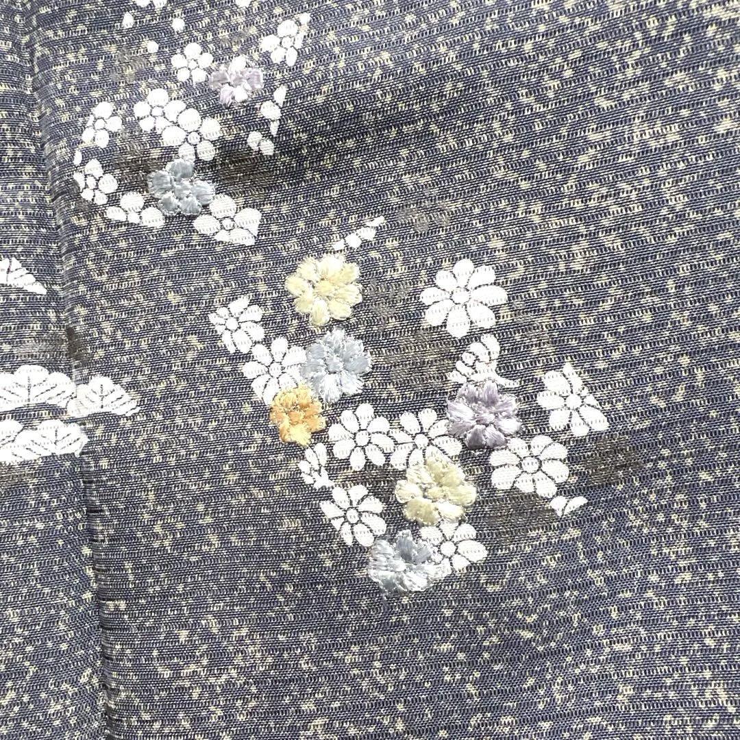 付け下げ 夏用 絽 刺繍 色紙 銀彩 菊 萩 松 たたき染 着物 043a d
