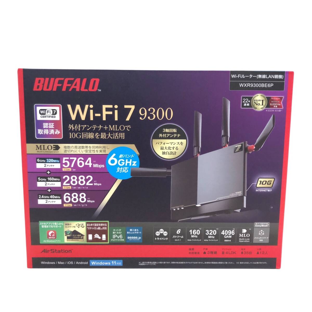 新品未開封 BUFFALO Wi-Fi 7 93000 Wi-Fiルーター 無線LAN親機 WXR9300BE6P 起動・動作未確認 |