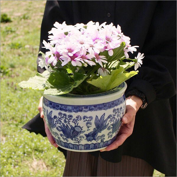 | 悠々と泳ぐ金魚の姿が描かれた 爽やかな印象の陶器鉢 【使用例】 ・睡蓮・メダカ・金魚鉢として ・プランターカバーとして ・小さな暖をとる手火鉢として ・灰が飛びにくい、蚊取り線香ホルダーとして ・水耕栽培の器として 手頃なサイズで 何処でも、気軽に楽しめそうです 商品名 : 陶器の金魚鉢 青花 商品番号 : swa6008 全体サイズ(cm) : 直径20.5×高さ14 口径 : 16 内容量(満水) : 3L 重量 : 1.5kg 材質 : 陶器 生産国 : 中国 ※手作り品につき柄の出方の違い・かすれ、色ムラ等がございます ※ディスプレイによる色の違いはご了承下さい |